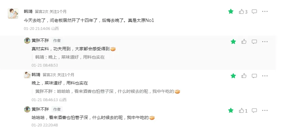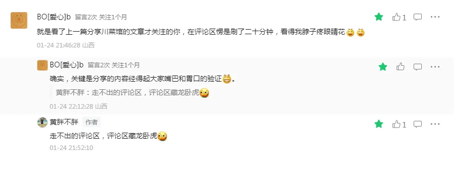 年前各路人马回到太原要约川菜馆一起吃个饭,我说老板娘早回四川过年去了。要说一家川菜馆正经不正经,就看老板啥时候回去过年,常规操作就是一进腊月就收拾上了,一般赶个腊月初十左右今年的买卖就算做到这了,就要回老家好吃好喝,和一大家子团聚了!读者给的反馈也是满分好评,看来老板饭店处在小马村巷子里深处的位置也对生意造成了一定的影响,看来酒香也怕巷子深。还有这些可爱的小伙伴们,这篇文章转发量将近2000+爱吃的人都是最好的人,吃到好吃的,看到好吃的,都想要转发给那个想要一起去吃的人。还有这些可可爱爱的读者,老板都回去半个多月了,还想要去吃的!前天看见朋友圈老板离开了心爱的家乡,终于要回来太原了!这都正月二十啊!您还记得您在太原还有家饭店啊!哈哈哈,四川人真的是乐天派。那天看见乔乔老师发的一篇文章,我评论说感觉自己小时候老觉得对不住父母,不能多帮他们干些活,长大了老觉得上班顾及不到孩子,一年接送孩子上下学次数一个巴掌都能数过来。乔乔老师告我其实我们最对不住的就是自己,我想了想真的是,以后真的要对自己好一点了。老板带的这些应该都是限量版的家乡特产,想吃的赶快来!我就吃过老板家儿子带的南瓜苗,太安逸了!这腊肉看着有点雪花的感觉,我最近可是有点迷恋火腿、腊肉。炝炒南瓜苗,隐藏菜单,吃了十五年只吃过一回,可遇而不可求!年前没吃上的,好多问我什么时候老板开门的,今天开始都可以约起来了!亲爱的小伙伴们,太原、榆次周边到底哪家川菜馆子最好吃呢?你们最喜欢哪道菜呢?评论区都分享一下。