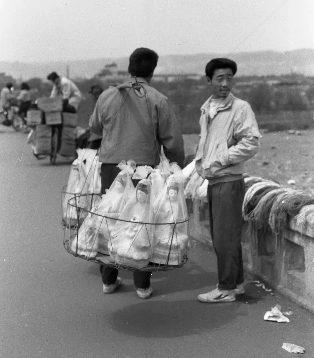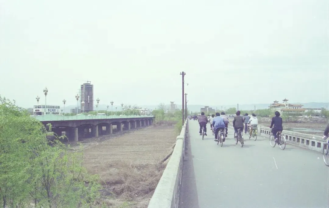 1995年,我在“洋灰桥”上,从东向西拍的迎泽大桥。 1995年,迎泽大桥下的汾河,正是这般模样。汾河之水,像千百年来一样,自然流淌。 1995年4月24日,在“洋灰桥”上摆摊儿的小商小贩。这位兄弟的脚后跟处,正是我拾粪的地方。这张照片,也是我自己冲洗放大的作品。
