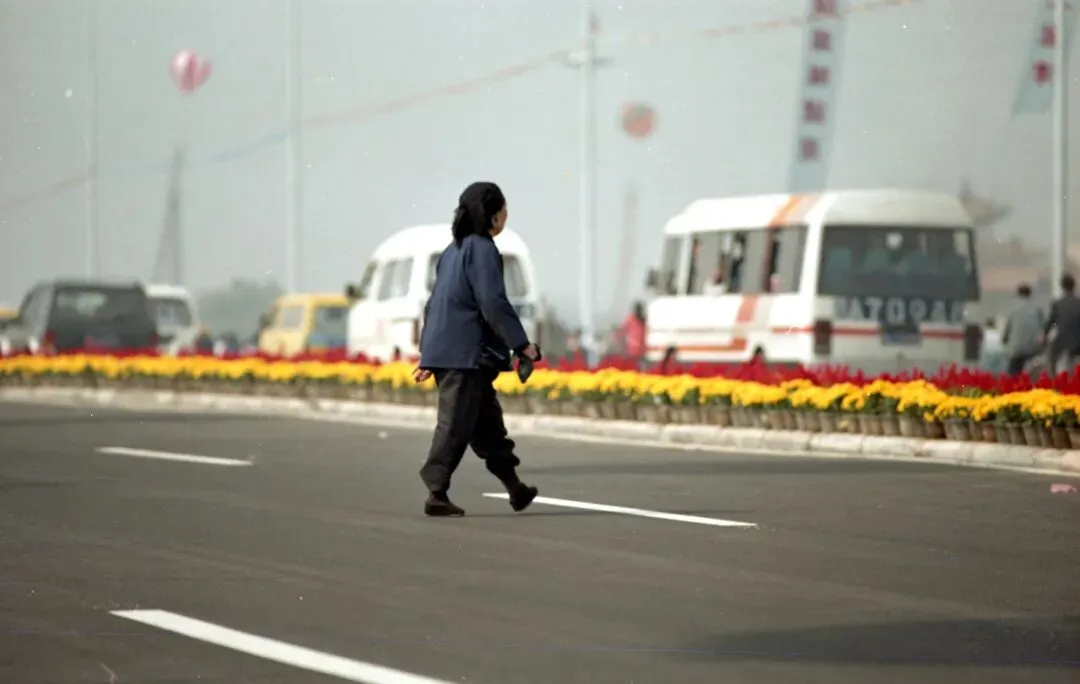 1997年10月1日,这是太原市民一个难忘的日子。新建的迎泽大桥正式开通,人们纷纷涌向这座崭新的桥。这位小脚老太太,迈着矫健的步伐,走在布满鲜花的大桥之上,把人们的视觉激情拉满。