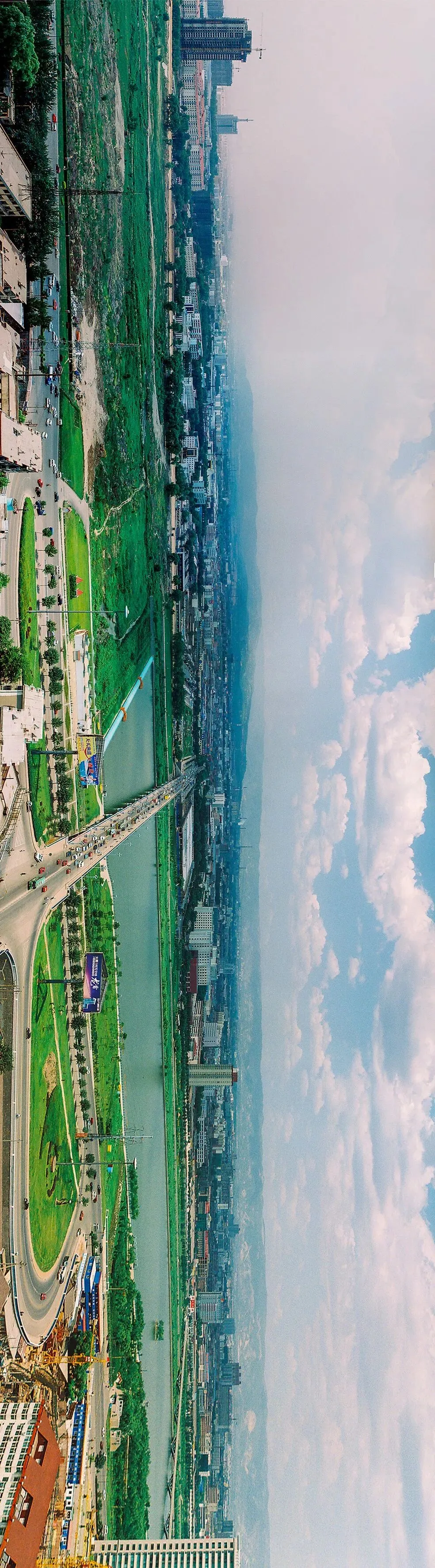 2001年,我在迎泽桥西“迎西大厦”上,用尼康FM2照相机+20mm广角镜头,以不同的角度拍了五张迎泽大桥的照片,冲洗扩印成七寸照片后,找到会使用PS软件的有关人士。她扫描照片后,给我拼接了这张照片,由此拉开了我对“接片”的兴趣。这张照片,在太原市委宣传部举办的“龙城盛世展宏图”大型摄影展览中获一等奖,作品的题目就是:“龙城盛世展宏图”。 之后,很多地方都纷纷使用这张照片,我呢自然有所收获。最具有故事性的事情是:有一位即将毕业的大学生,根据照片上的手机号码找到了我,硬要花800元买我的这张将近两米,并已经装框的照片;而我这张照片的价格远远不止这个价。大学生便向我诉苦,说家里如何如何困难,自己又多么多么喜欢这张照片。现在,马上就要毕业了,想把自己上学的这座城市展示给家人和亲友看。当时,我深深地被他感动了,直接就把照片送给了他。当他抱着这幅硕大而漂亮的照片走的时候,我心里还是有些说不出的滋味。现在,不知道这位大学生能不能看到这篇文章? 2005年6月14日,在同一位置,我又拍了这座桥。 2005年6月14日,趁着这个好天气,我又拍了南内环桥。