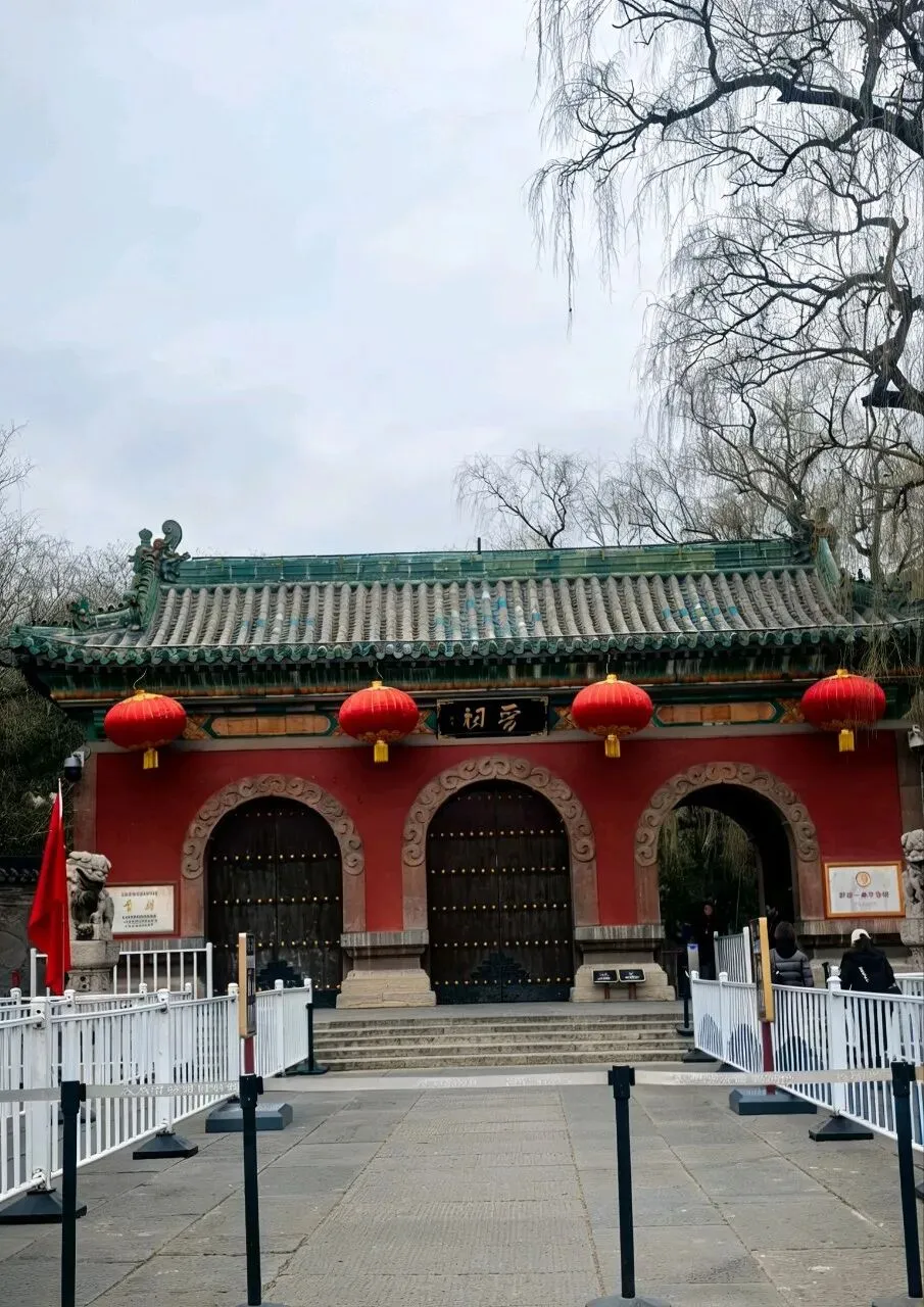 游晋祠,不用攀险峰。从这道门一脚踏进去,便撞进北宋的光阴里。 眼前的建筑格外眼熟,正门两侧对称的圆形窗格,正是86版《西游记》里孙悟空变身“小土地庙”的经典场景。门前的一对明万历年间铁狮,静静镇守两侧,相比嘉靖年间的铁狮子,它们的造型更饱满,雕纹更精致。