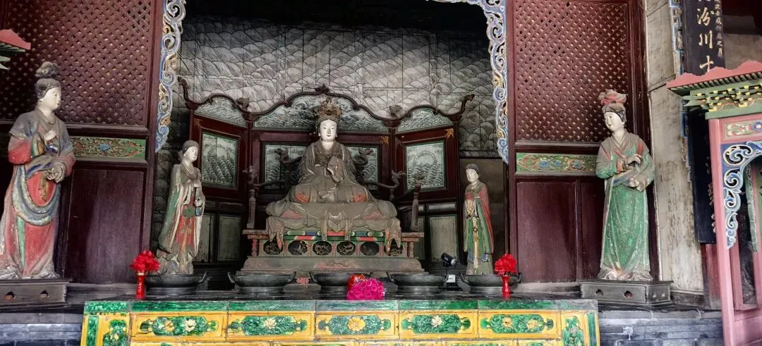 殿内,圣母邑姜端坐于须弥座上,凤冠霞帔,衣袂垂落如流水,眉眼温和,气度沉稳,神色端庄,一派天家威仪,彩绘虽略有褪色,却依旧难掩华贵与端庄。周围的四十余尊侍女与宦官彩塑,没有神像的端肃,没有威仪的刻意,个个都是人间模样。史书里只记圣母的尊崇,丹青里只绘殿宇的辉煌,没人在意这些深宫侍女的悲欢。北宋的匠人偏要把这些细碎的心事刻下来,留一副副真实的骨血,一缕缕尘世的心事。