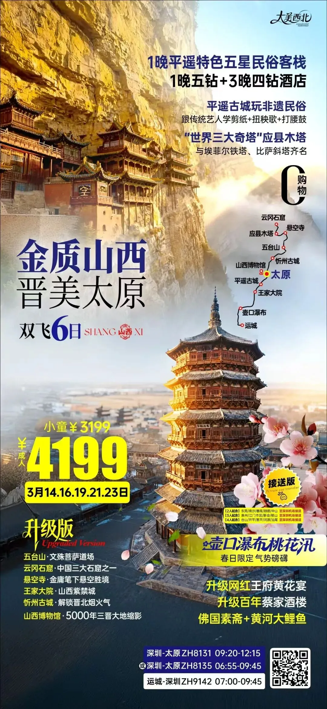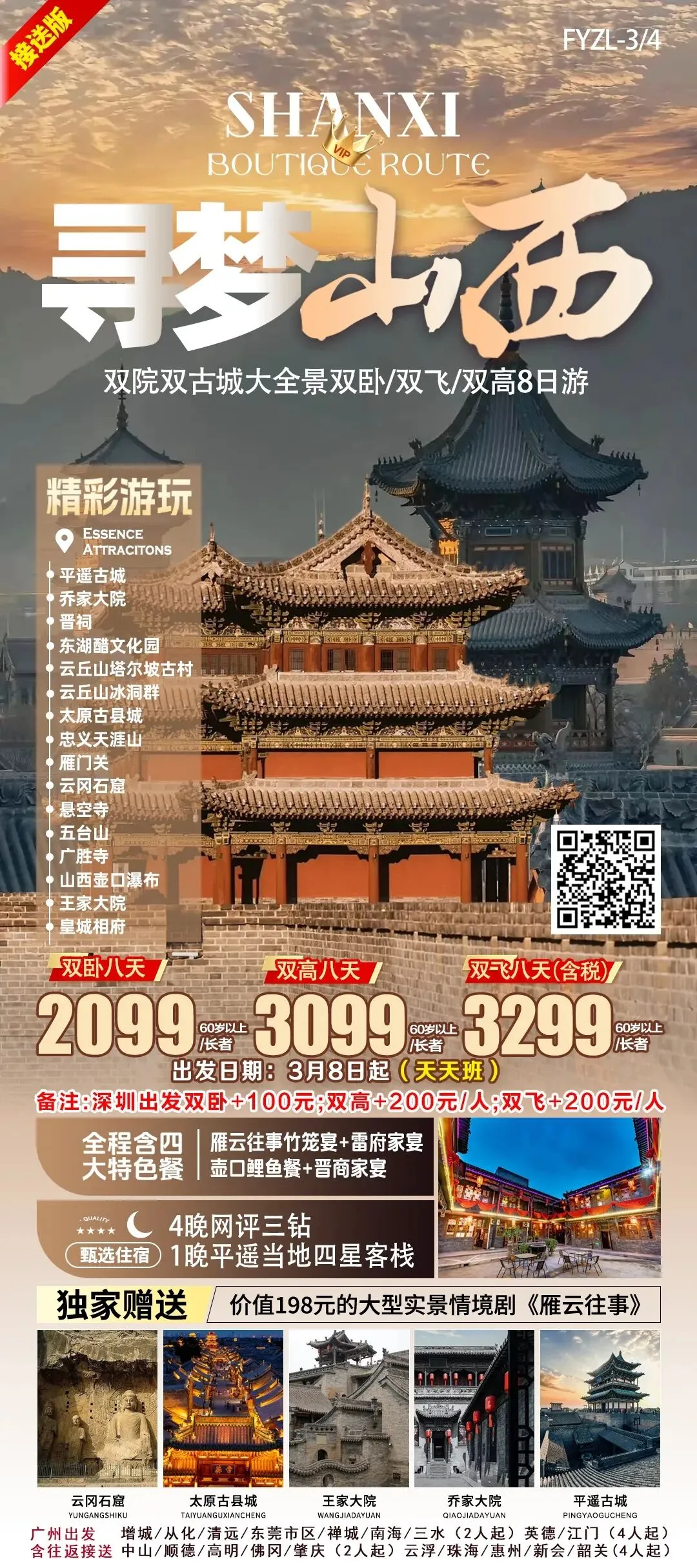 太原古县城/忻州古城/大同古城墙旅游线路(东莞含接送)