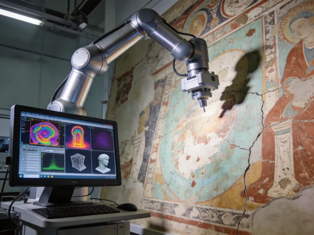 博物馆藏了59个传感器,实时监测温湿度、震动、微米级形变。不是等坏了再修,而是让它别生病——这思路太超前了。壁画也有'生命体征',得全天候监护。
