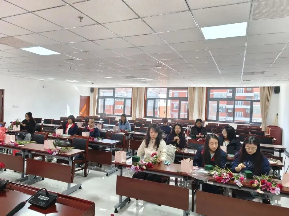 中心领导也亲临现场与大家在花香中交流心得、分享喜悦,沉浸式感受花艺艺术的魅力,女职工们在轻松愉悦的氛围中度过了一个温馨浪漫的节日。此次活动不仅让大家学习了插花技能,缓解了工作生活压力,更传递了对女性的关怀与祝福,展现了新时代女性积极向上、优雅从容的精神风貌,进一步增强了集体凝聚力与归属感。
