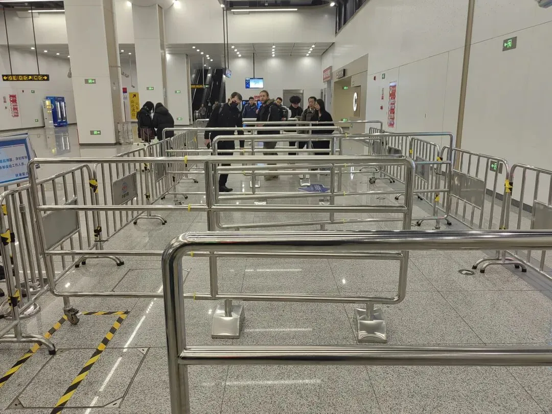 拿这种栏杆放到地铁进站口还是第一次看到,竟然还是太原南站和太原站的地铁入口处。北京西站、北京丰台站,每天人流量不可谓不多,是太原站和太原南站的几十倍不止,也没见人家火车站的地铁口拦成这么多曲里拐弯的,让本该顺顺畅畅的进站安检路,变得让人肚里窝火。