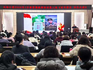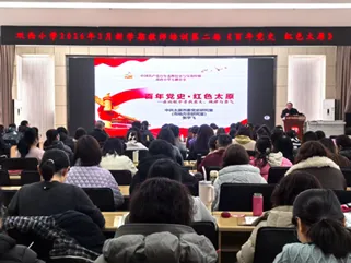 为深入学习贯彻习近平新时代中国特色社会主义思想,扎实推进党史学习教育常态化长效化,引导全体教师从党的百年奋斗历程中汲取智慧和力量,2026年3月6日,我校特邀中共太原市委党史研究室(市地方志研究室)张宇飞同志,为全体教师带来了一场题为《百年党史·红色太原——在比较中寻找意义、规律与勇气》的专题培训。