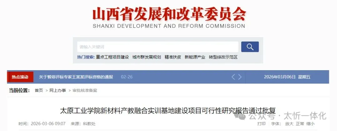 喜报!太原工业学院新材料产教融合实训基地建设项目获省发改委正式批复