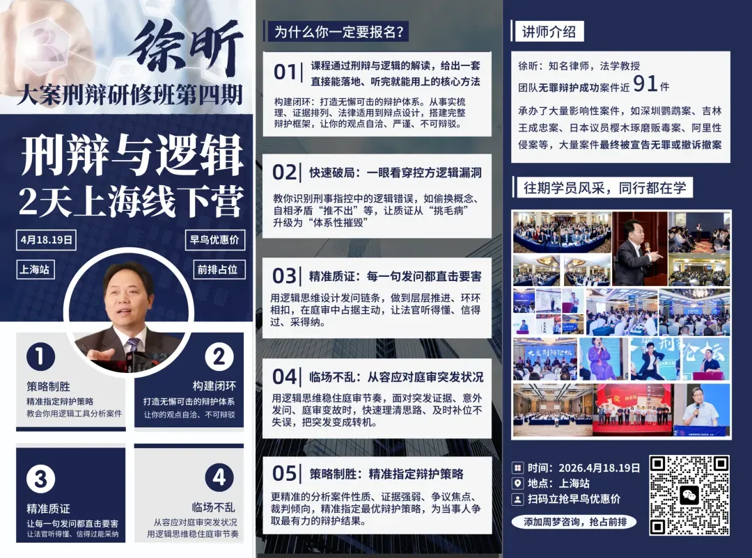 如今,我们再次向您发出邀请:大案刑辩研修班第四期,2026年会,徐昕老师线下深度交流暨大案刑辩论坛,即将开启。
