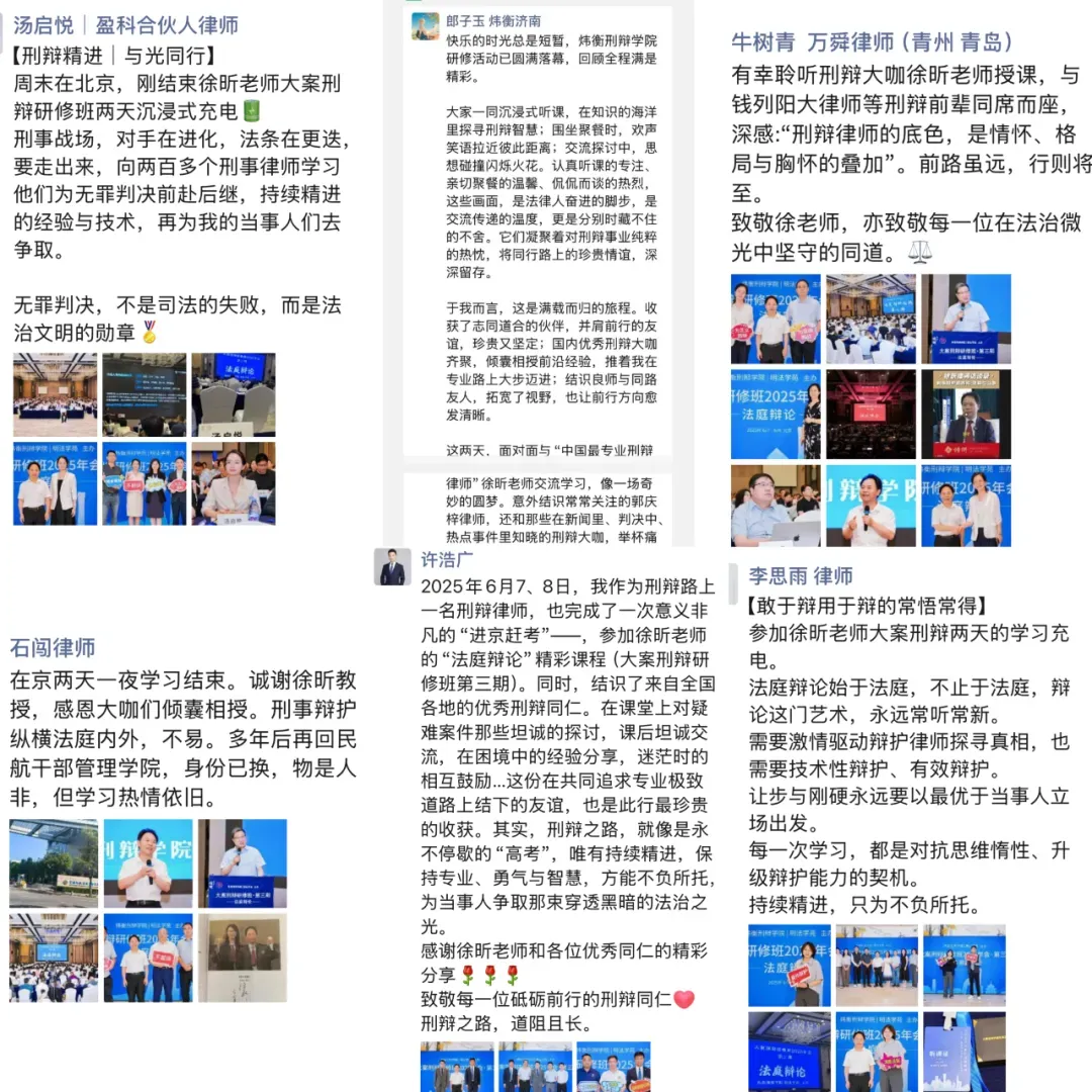 徐昕老师的刑辩课,早已不是一场简单的培训,而是全国刑辩律师奔赴而来、以辩会友、共探正义的年度约定。三届课程,场场爆满,每一次报名开启便迅速逼近人数上限,每一次结业都留下无数同行携手前行的佳话——这不是刻意营造的热度,而是全国刑辩人对一位顶尖法律学者、一位坚守正义的刑辩律师,最真诚的认可与奔赴。