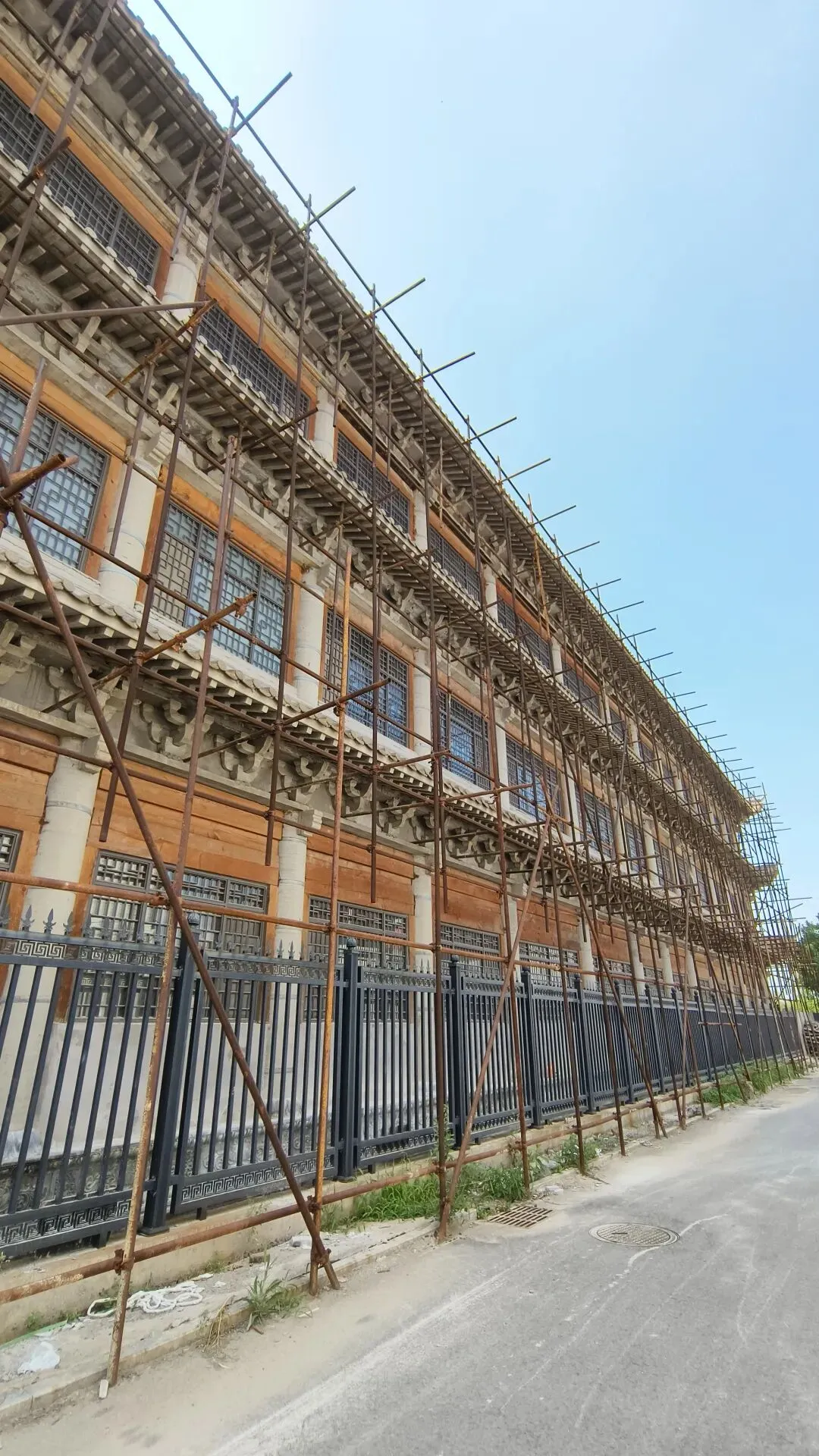 今之晋霖寺,坐北朝南,院落规整。山门古朴,青砖黛瓦,墙嵌圆形砖雕,线条利落。入内依次为天王殿、大雄宝殿,配殿分列两侧;