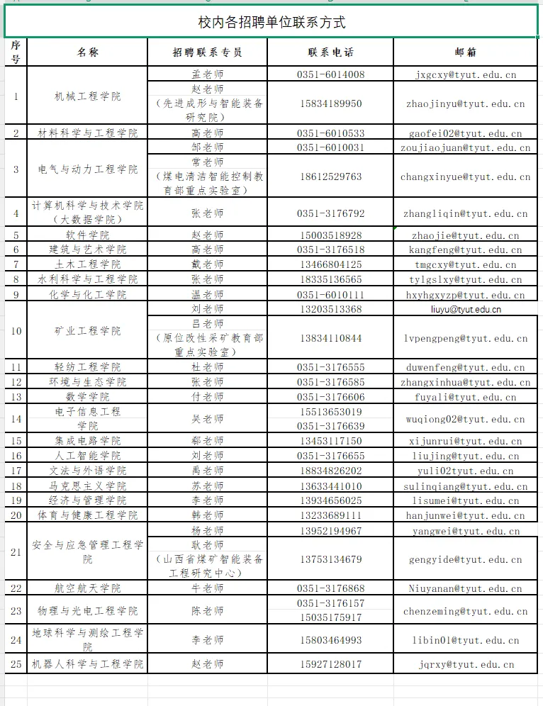 联系地址:山西省晋中市榆次区大学城太原理工大学人才工作办公室(人力资源部)