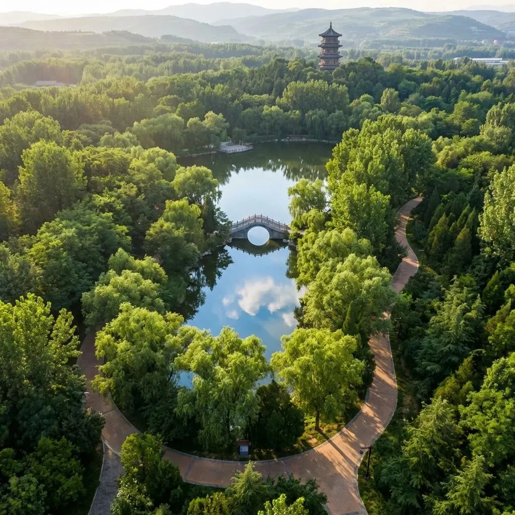 它没有晋祠的喧嚣,也没有古县城的商业化,只有纯粹的树木、湖泊和鸟鸣。