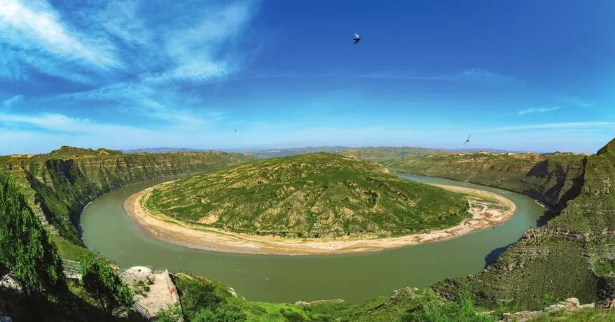 石楼最让人记住的就是黄河第一湾,这个湾不是人工修出来的景观,是黄河自己走出来的,黄河从青海一路奔腾到这儿,突然就拐了个接近360度的大弯,这个弯拐得有力量,有气势,站在高处往下看,整条黄河像是在山谷里画了个句号,那种视觉冲击力是照片传达不出来的,你得站在那儿,看着那条大河怎么转身,怎么掉头,才能感受到什么叫自然的意志。