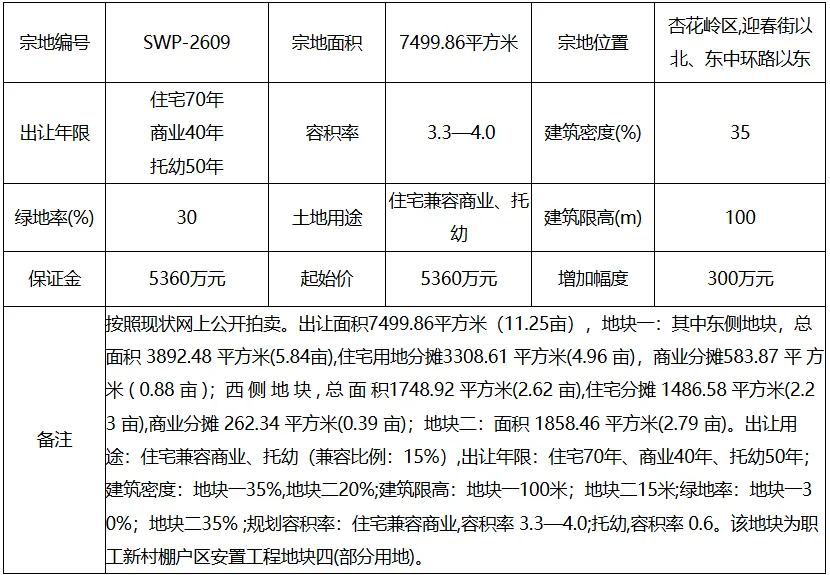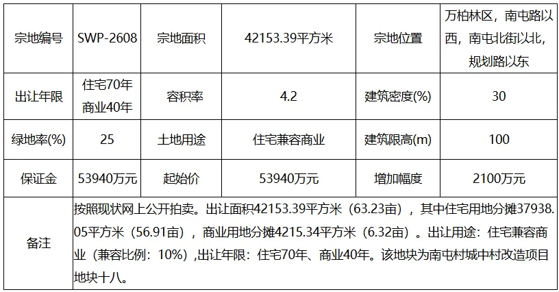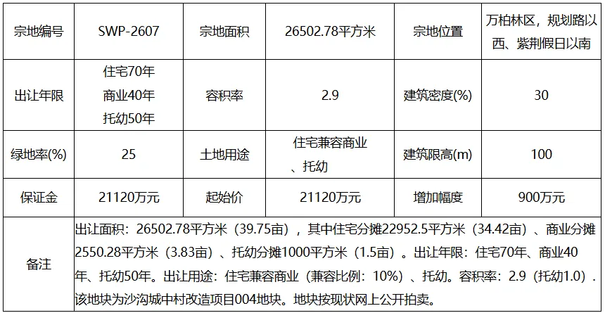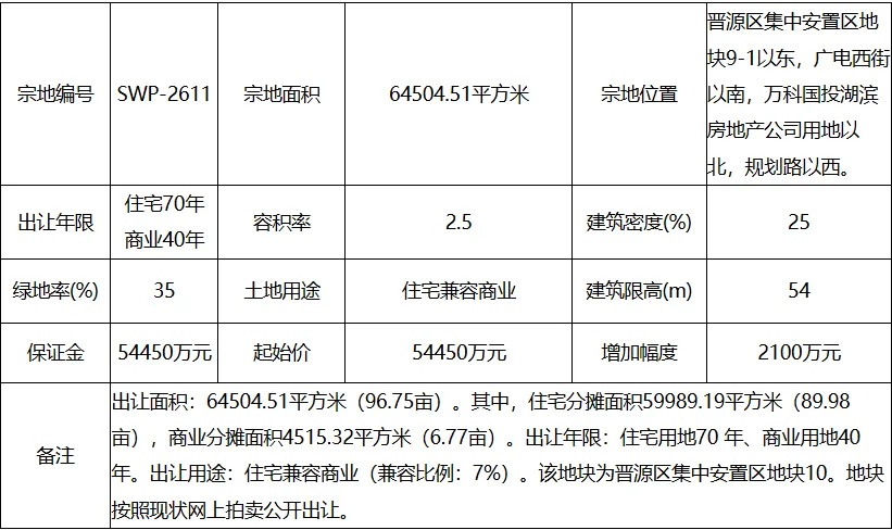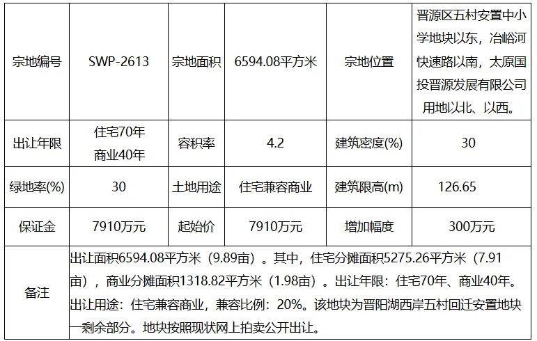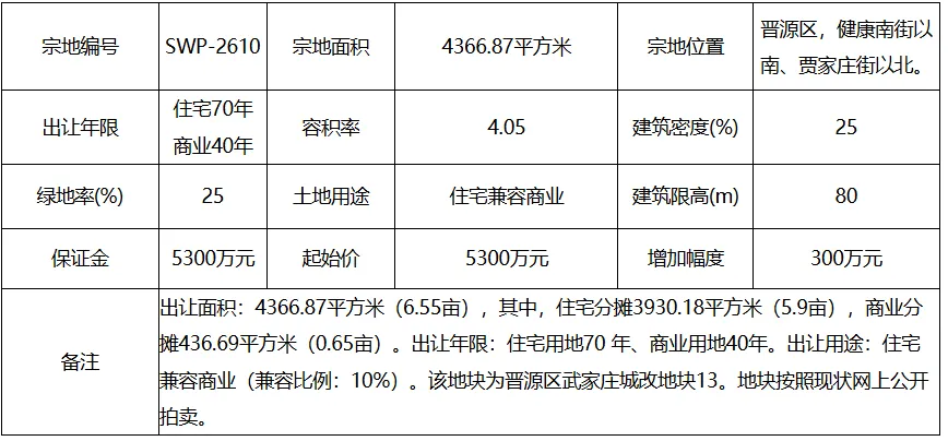 拍卖报价时间为:SWP-2541号地块:2026年03月28日09时30分10、万柏林区2608地块:住宅兼容商业地块