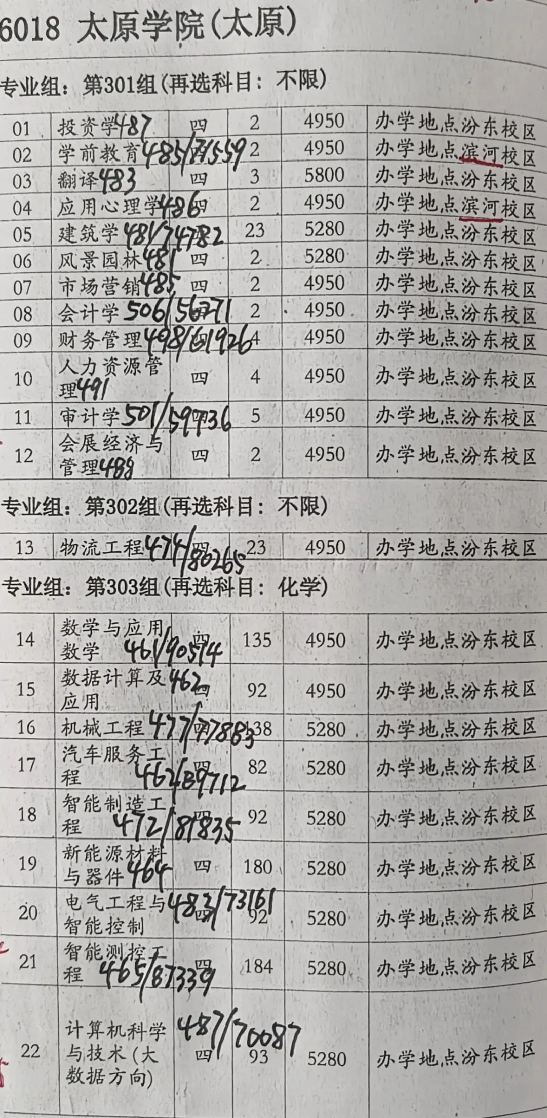 太原学院是五大学院中唯一没有招收师范类专业的,它的学前教育、数学与应用数学也是非师范类。太原学院隶属于太原市,是五大学院中唯一的非省属高校。与晋中学院相比,太原学院第301组的文科类热门专业分数接近特控线,明显高于晋中学院。第303组的网络工程、物联网工程明显高于晋中学院,但计算机科学与技术由于招生人数较多,录取分数低于晋中学院。机械类专业也稍低于晋中学院。同等分数下,考生可能会在太原学院与晋中学院之间纠结,我稍倾向于晋中学院,但关键还是要看能不能保住目标专业。