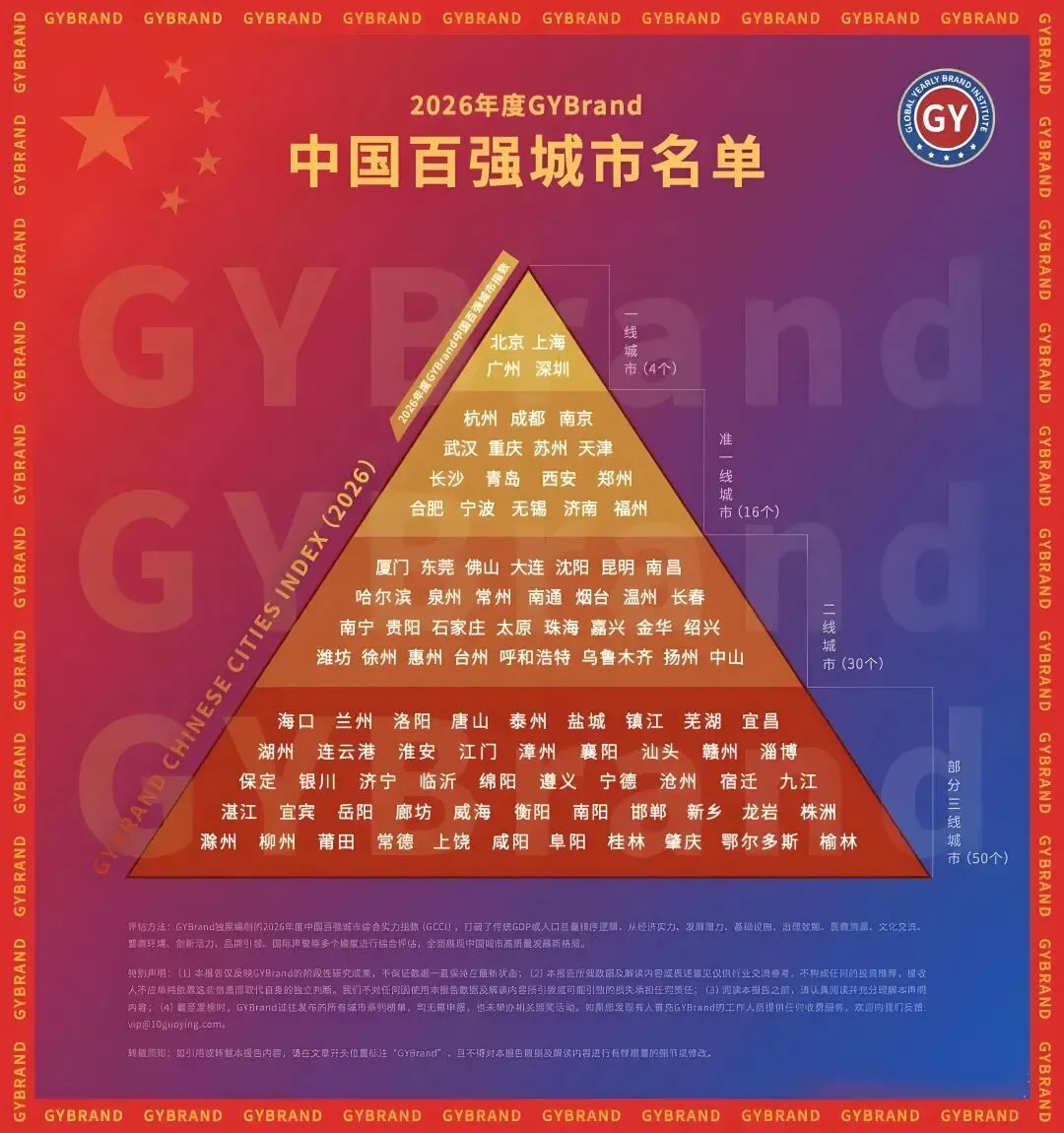 GYBrand《2026年度中国百强城市名单》出炉,太原在二线城市梯队中排到了第38位,比2025年的第40位前进了2名。