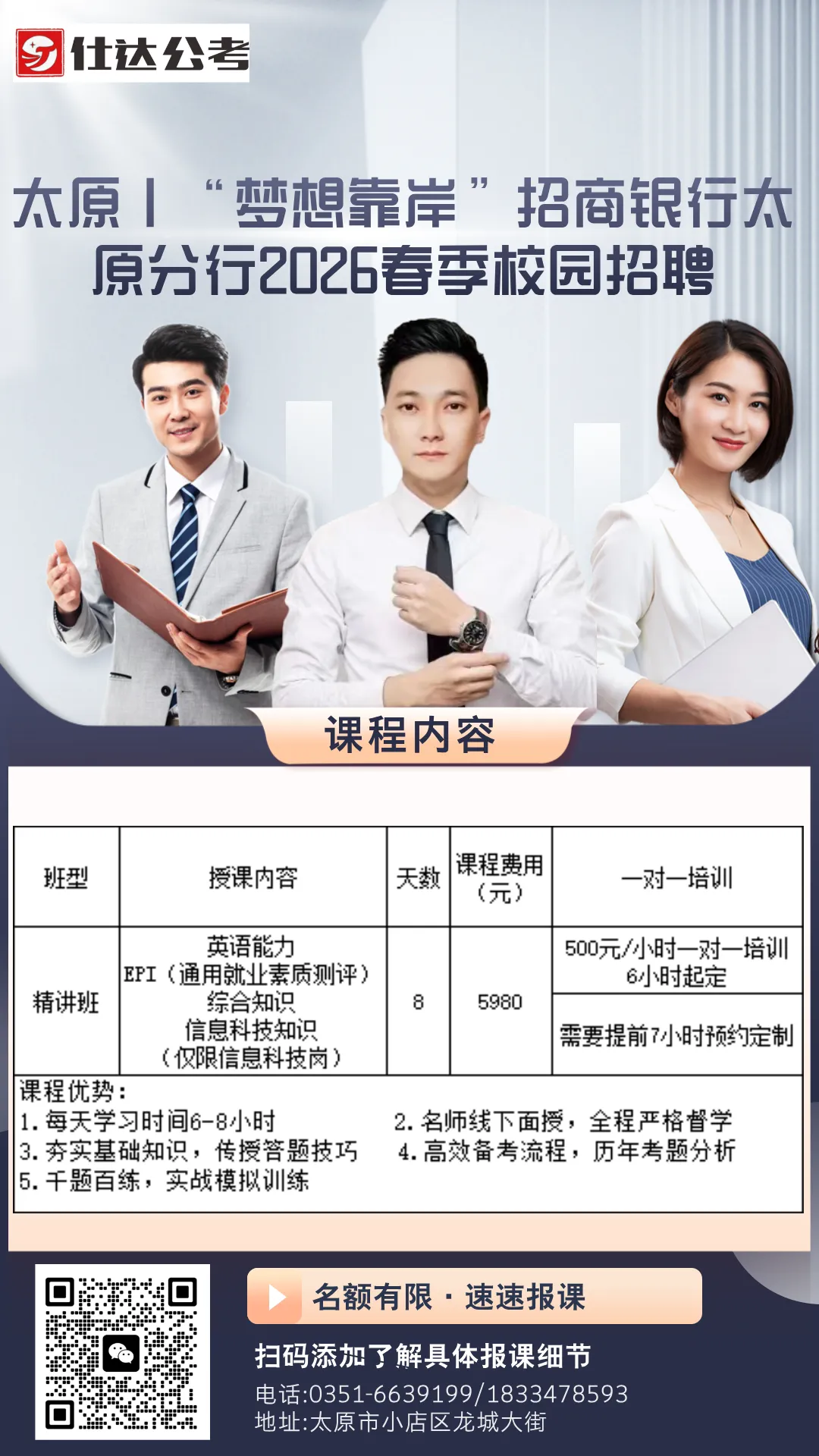 >太原|“梦想靠岸”招商银行太原分行2026春季校园招聘丨山西事业单位考试丨山西事业单位入编培训