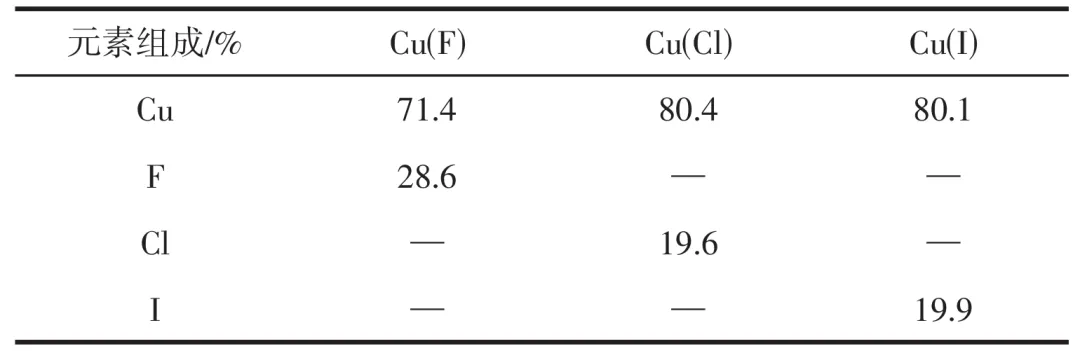 表1 Cu(F)、Cu(Cl)和Cu(I)的各元素质量分数