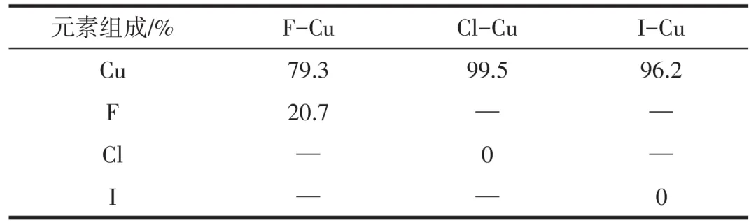 表2 F-Cu、Cl-Cu和I-Cu的各元素质量分数