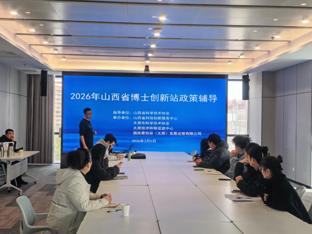 为做好晋创谷·太原2026年山西省博士创新站申报工作,推动博士创新站建设落地见效,搭建产学研深度融合的创新平台,3月6日,太原技术转移促进中心、国投晋创谷(太原)运营发展有限公司联合山西省科学技术协会、山西省科技创新服务中心、太原市科学技术协会等多家单位在晋创谷・太原科创产业园举办2026年山西省博士创新站政策辅导会。国科瑰石(山西)科技有限公司、山西岩土科技有限公司、山西义高科技有限公司、山西未来数港科技有限公司、山西峰和低碳材料科技开发有限公司等10余家入驻企业参加辅导会,本次辅导会将围绕博士创新站申报全流程开展专题讲解与一对一指导,为意向申报企业答疑解惑,助力企业精准把握政策红利,加速技术创新与产业升级。