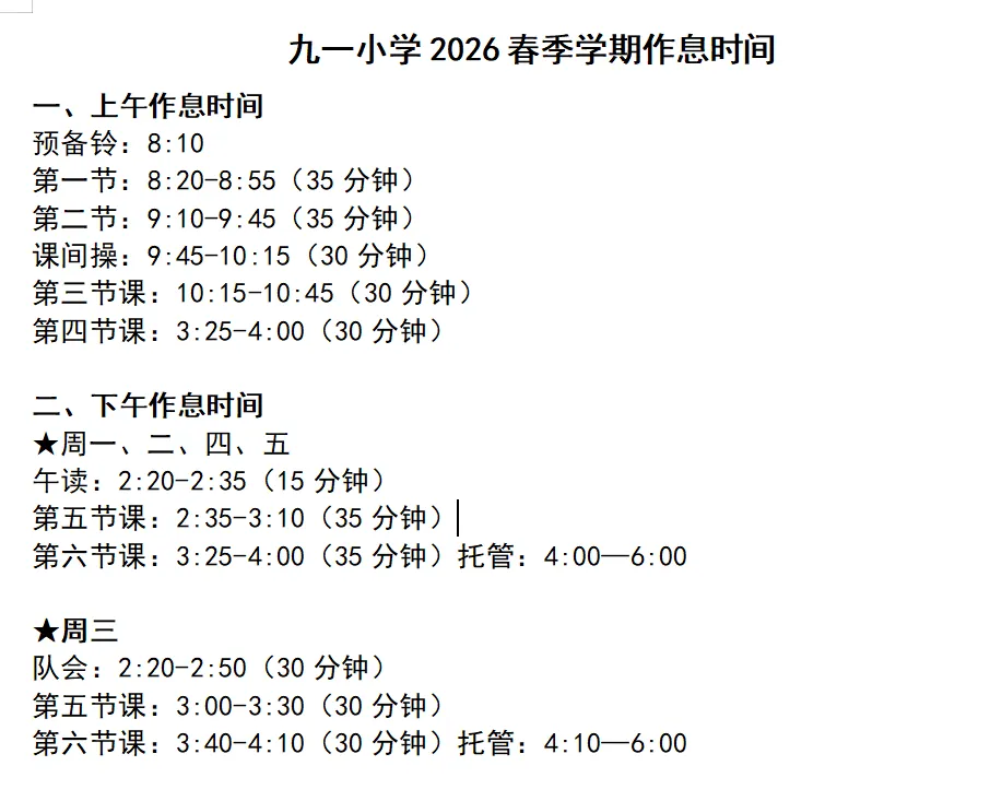 >太原多所小学2026春季作息时间公布