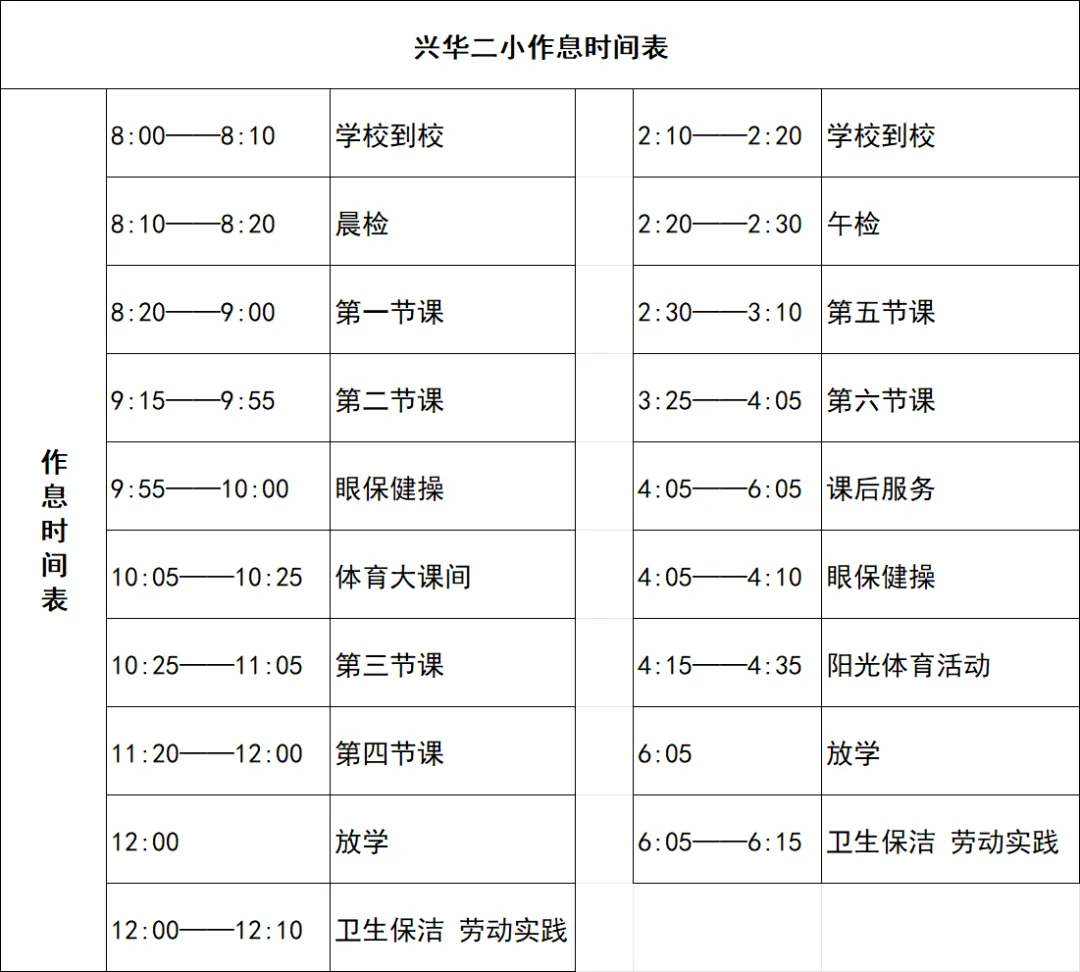 兴华二小作息时间表