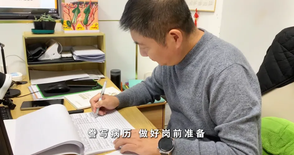问诊、检查、开单、叮嘱。一个接一个,几乎没有间断。遇到第一次来的患者,他会把病情讲清楚——现在是什么阶段,接下来怎么治,大概需要多久。遇到治疗一段时间的,就看恢复情况,调整方案。
