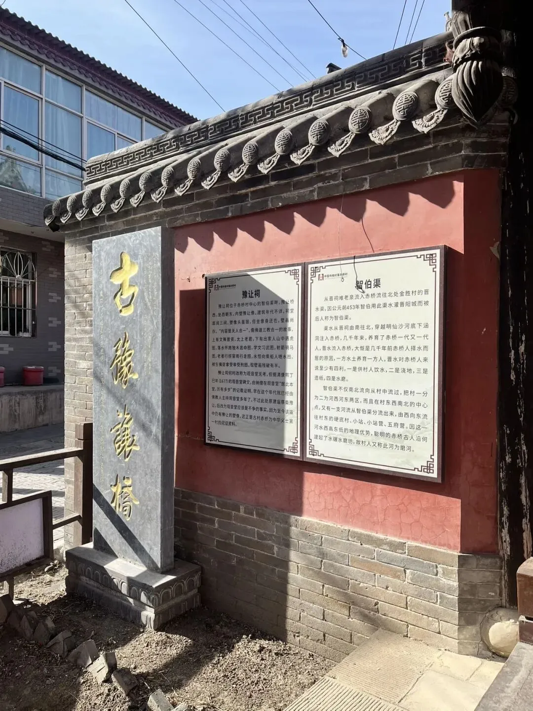 早就听说省城太原晋源区有个赤桥村,晋源和赤桥村与襄垣都有千丝万缕的关系。前段时间机缘巧合来到了连哥他们村,必须拜访一下连哥。连哥见到我第一时间就想了想说今天村里没人结婚,要不就能带你吃上羊汤汆饺子、金蛋蛋了,哈哈哈。想起来赤桥村的故事,我就问连哥赤桥村离这远么,连哥说不远我带你去,连哥的战车开的是真猛!我开了运动模式才勉强追上,老高真的拧!连哥到了目的地告我他要去卖他的茶和酒去了,不陪我了。哈哈哈,感谢连哥的领航,大家要需要茶和酒方面的都可以找社会我连哥,连哥的能量场很强大,太原音乐圈子、晋源的圈子,都可以通过我连哥链接上。连哥深爱着晋源,深爱着晋祠,深爱着晋阳古城。晋祠的春夏秋冬都有他的身影,现在他深爱着的晋阳古城伴随着卖货郎也好起来了。我记得第一次知道这个村还是看真拧哥的视频,拧哥介绍了赵襄子遇刺的事让我把这太原襄垣两个地方给链接起来了。很喜欢这老干虬枝的感觉,沧桑又充满生命力,依旧是又爱又有趣的人,把古树修在家里面,也不肯害了她。郑伯阳先生算是傅山先生的恩师,傅山先生的气节坚守或许就是来自于郑伯阳先生的传承,老宅应该还是郑氏后人在居住,从门外的对联与百寿图均能感受到浓浓的人文气息。没想到从柳林尖来到了晋源,傅山先生与晋源的链接也建立了。赵襄子修筑了襄垣之后就回到了晋阳,智伯对他率先发难,没想到最后被赵襄子联合魏、韩反杀。上图中豫让桥附会桥就写的有襄垣县故县城北关桥,这就是太原晋源赤桥村与襄垣的千丝万缕的关系之一。我觉得赵襄子应该是非常喜欢襄垣的,要不不会拿自己的名字来命名这座城池。就像一个厨师敢用一道菜做店名,那这道菜你绝对放心大胆点,这要不好吃就是砸招牌的事了。至此,赵魏韩三家分晋,对了我们小时候我们镇还叫城关镇,应该是初中才改成了古韩镇,也是和这段历史有着直接的关系。去年开始太原市面上出了一款新酒赵魏韩,不知道好喝不,名字蛮有历史感。士为知己者死,女为悦己者容。主人公就说的豫让,豫让是襄垣人,这就是太原晋源赤桥村与襄垣的千丝万缕的关系之二。智伯对豫让的知遇之恩让他没齿难忘,他一次又一次的刺杀赵襄子,最后一次失败后自刎于该桥上。据传该桥被豫让的鲜血染红也出于纪念豫让的忠义遂改名赤桥。对联的内容都是称赞豫让的高尚品德,说真的,你们看看领导对员工好一点多重要!能给你卖命!每次太原雾霾天的时候来晋源天龙山脚下天都会很蓝,感觉晋源就是太原的风水宝地。晋源在太原属于比较古朴的存在,随处可见的老宅子真的很有沧桑感。该说不说这个地方写公众号的大佬们都应该来看看,父子同中举人,可见晋源文风之盛,怪不得明末文人领袖傅山先生都来此地求学问道。刘大鹏先生是清末民初著名地方史学者,最出名的就是《退想斋日记》。《退想斋日记》最动人之处,不在于文采,而在于数十年如一日的坚持。从清光绪十七年到民国三十一年,刘大鹏从青年写到暮年,几乎一天不曾间断!世道再乱。家境再难。身体再不适,他都坚持提笔记录,把一个乡绅的所见所闻,所思所感,默默写进日记里。这不是普通的日记,是一个普通人用一生写下的近代中国民间史诗!52年的坚持是我们每个公众号写作者不可逾越的高峰,我和彦青兄还有乔乔老师说你们真应该看看他写的《退想斋日记》,真是你们日更博主的榜样啊!我觉得他就是古代版的懂懂日记Promax版,他对晋祠也影响很大,现在去晋祠游玩还随处可见刘大鹏先生题的牌匾。我在连哥的茶桌上拜读过这本日记,很是有趣,没想到今天来到了主人家。今天我也下单了,有想读的一起下单读起来吧!让我们都成为一名优秀的长期主义者,时间带给我们的复利真的很美好。罗振宇前两天也分享了在这个AI横行的时代,只有当你丰富地、无死角地、且连续地记录关于自己的数据,AI才能帮得上你。古时候的官道今天看起来依旧清爽整洁,仿佛看到了“黎明即起洒扫庭除”。把视角再次拉回我的故乡襄垣,赵襄子修筑了襄垣,千年古县的璀璨历史与赵襄子父亲赵简子修筑的晋阳古城血脉相连。历史不是无趣,只是需要我们用双脚去丈量,用双眼去感受,历史是一张网,最终都会链接起来。历史不是静止的陈列,而是鲜活的延续,永远保持生生不息的活力。这就是赤桥村介绍的豫让桥附会桥,但我们小时候喊的都是北关桥。倒是豫让真的是襄垣人,千古第一刺客,太原晋源赤桥村供奉的襄垣人,想想也是挺魔幻。山西这片土地,既出豫让这样“士为知己者死”千古义士,也育盖聂这般令荆轲折腰的战国剑圣。我是真的与这些高人有缘,告别了故乡襄垣,告别了豫让,我现在居住的地方就与剑圣盖聂的居住地聂村相邻,《秦时明月》大火后,好多人还慕名前来打卡。亲爱的小伙伴们,你们的家乡都有哪些有趣的故事呢?发生过哪些历史事件?有哪些历史名人?评论区都分享一下。