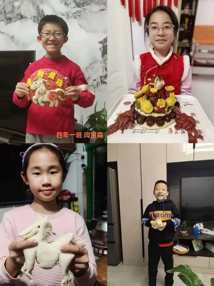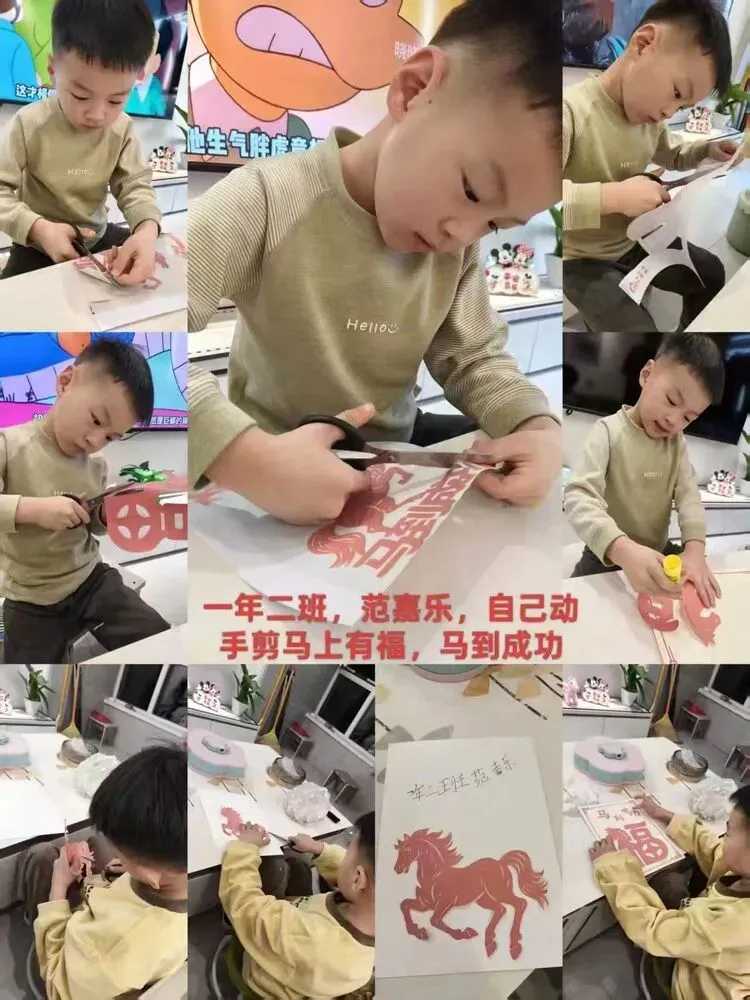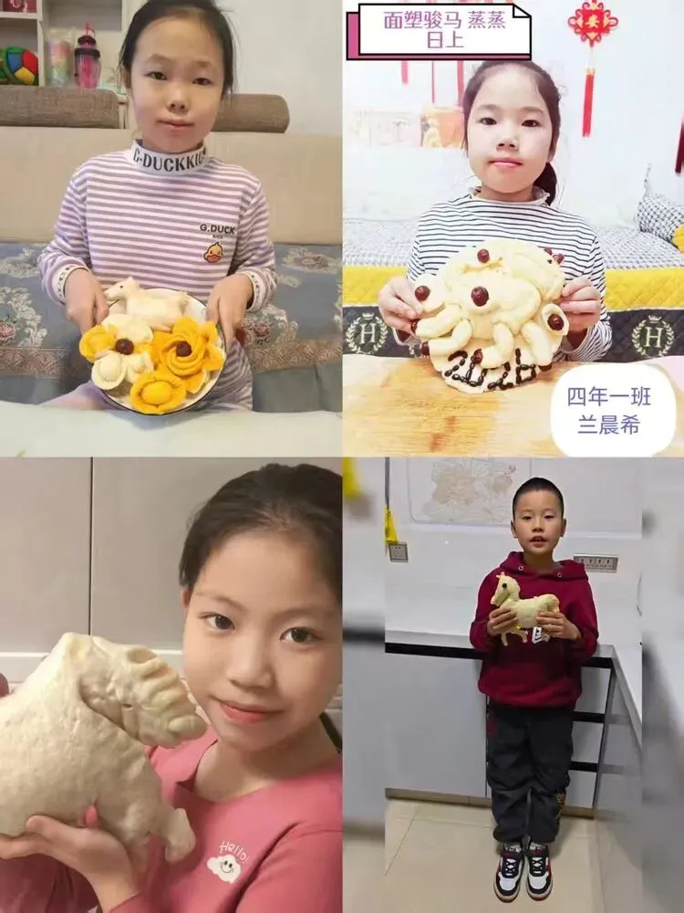 一件件作品童趣盎然、创意十足:奔马剪纸线条流畅,尽显奋进姿态;红包灯笼色彩喜庆,装点节日氛围;黏土小马憨态可掬,满载美好期许。学生们在裁剪、拼贴、塑形中,锻炼动手能力,激发创新思维,更在创作中读懂马年文化、体悟传统民俗。
