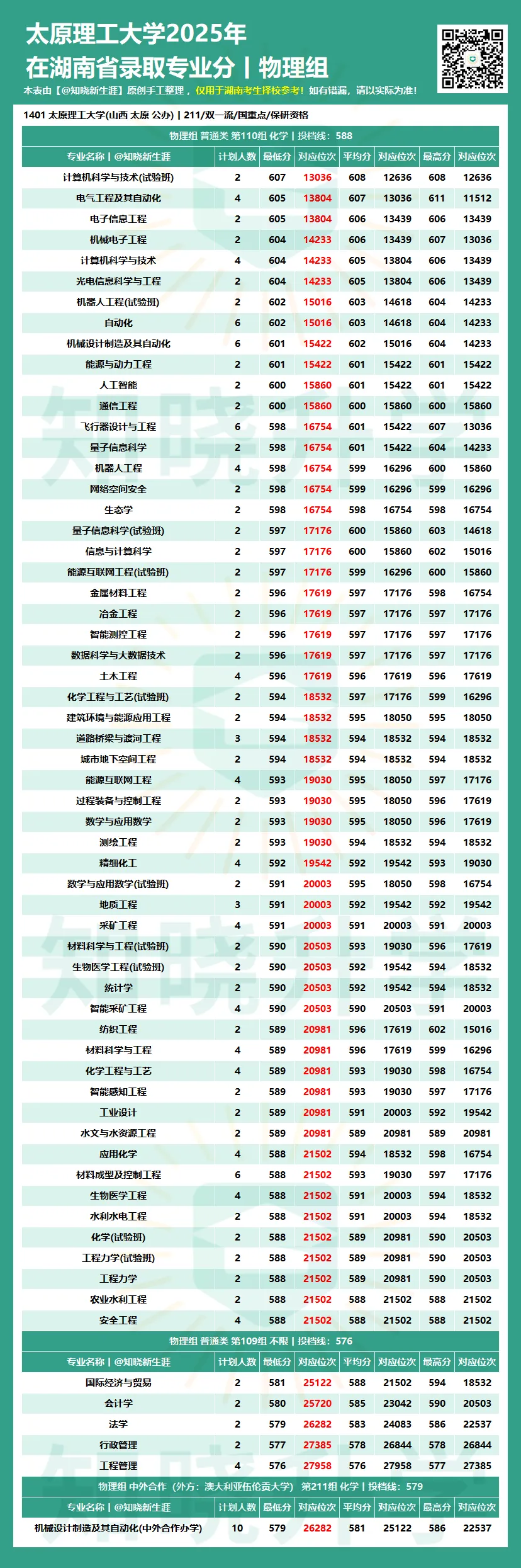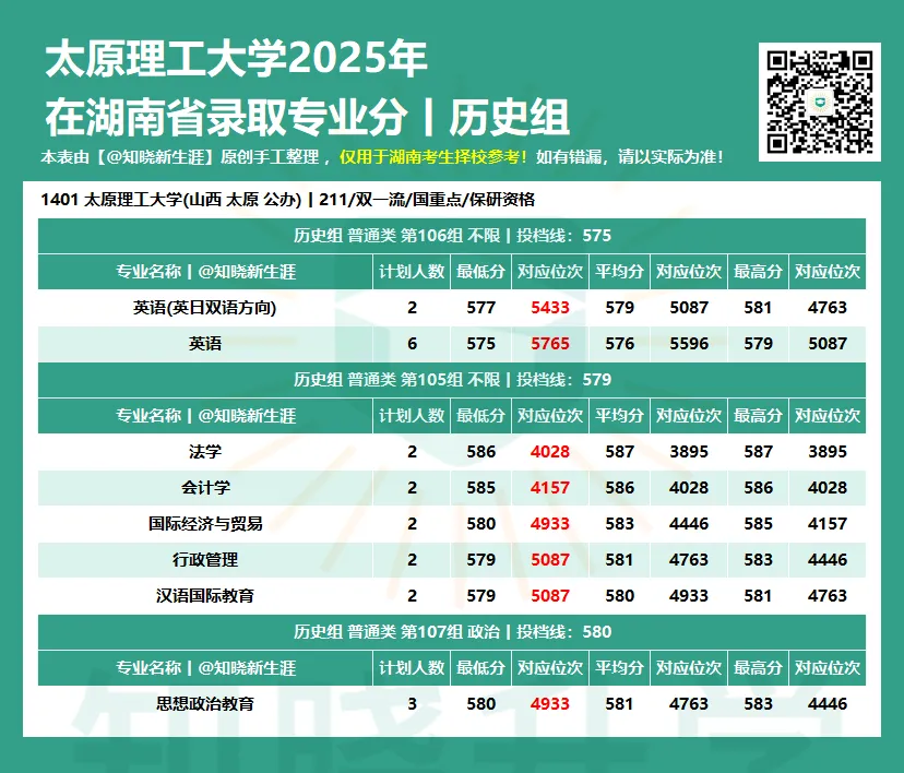 为助力湖南考生与家长科学定位,【知晓新生涯】公众号将陆续发布 《全国各大学2025年在湖南省各专业录取分数线及对应位次》。本数据并已按各专业组的专业录取最低分进行了高低排序,旨在: