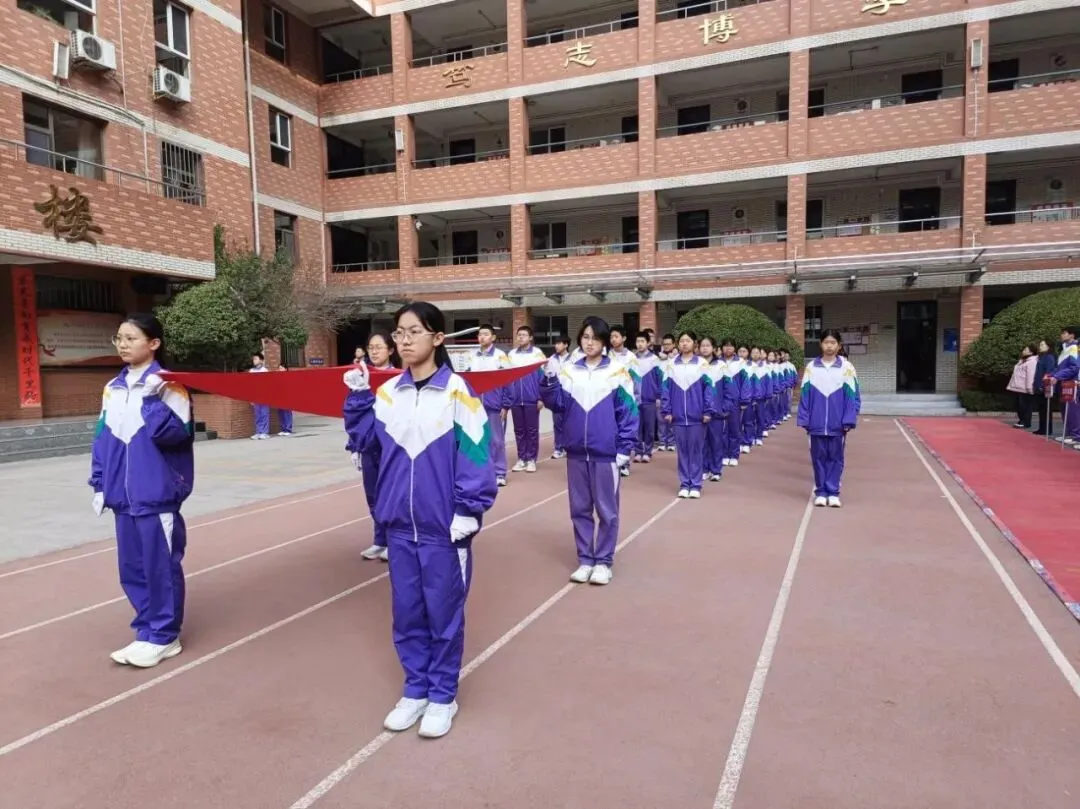 典礼在庄严的升旗仪式中拉开帷幕。五星红旗冉冉升起,全体师生肃立注目,歌声嘹亮,彰显着学子们昂扬向上的精神风貌和赤诚的爱国之心。
