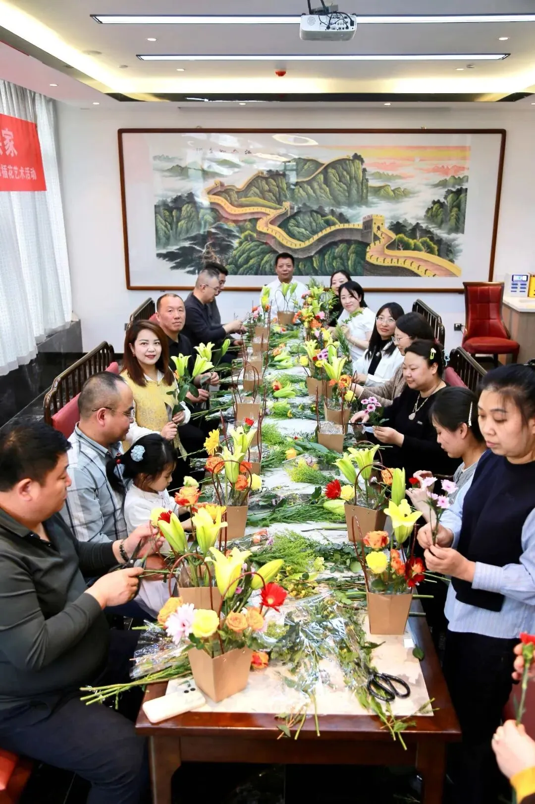 创作完成后,大家纷纷展示自己的专属花艺作品,分享创作心得,交流插花过程中的小技巧与小感悟。现场掌声不断,赞美声此起彼伏,大家一边欣赏彼此的作品,一边拍照留念,定格下这充满诗意与温情的瞬间。最后,全体女同胞手持自己的花艺作品,集体合影,让这份美好与温暖永远留存。