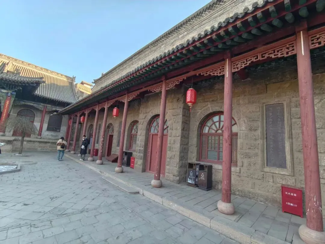 迈入大门,一座小巧别致的假山半遮视线,营造出“曲径通幽” 的意境,让人无法一眼望穿院落全貌。转过假山,便是第一院,院落开阔,地面由鹅卵石与青砖铺就成精巧的几何图案。对面是高大的二层楼阁,南北两侧则是出厦大瓦房。穿过过道抵达二院,正厅为三间大房,屋内陈设着桌椅,是当年阎氏家族议事、设宴的场所,南北两侧皆有出檐抱厦,直通后院。三院的宫殿式大楼高大巍峨,站在三楼顶端,可将全村风光尽收眼底。