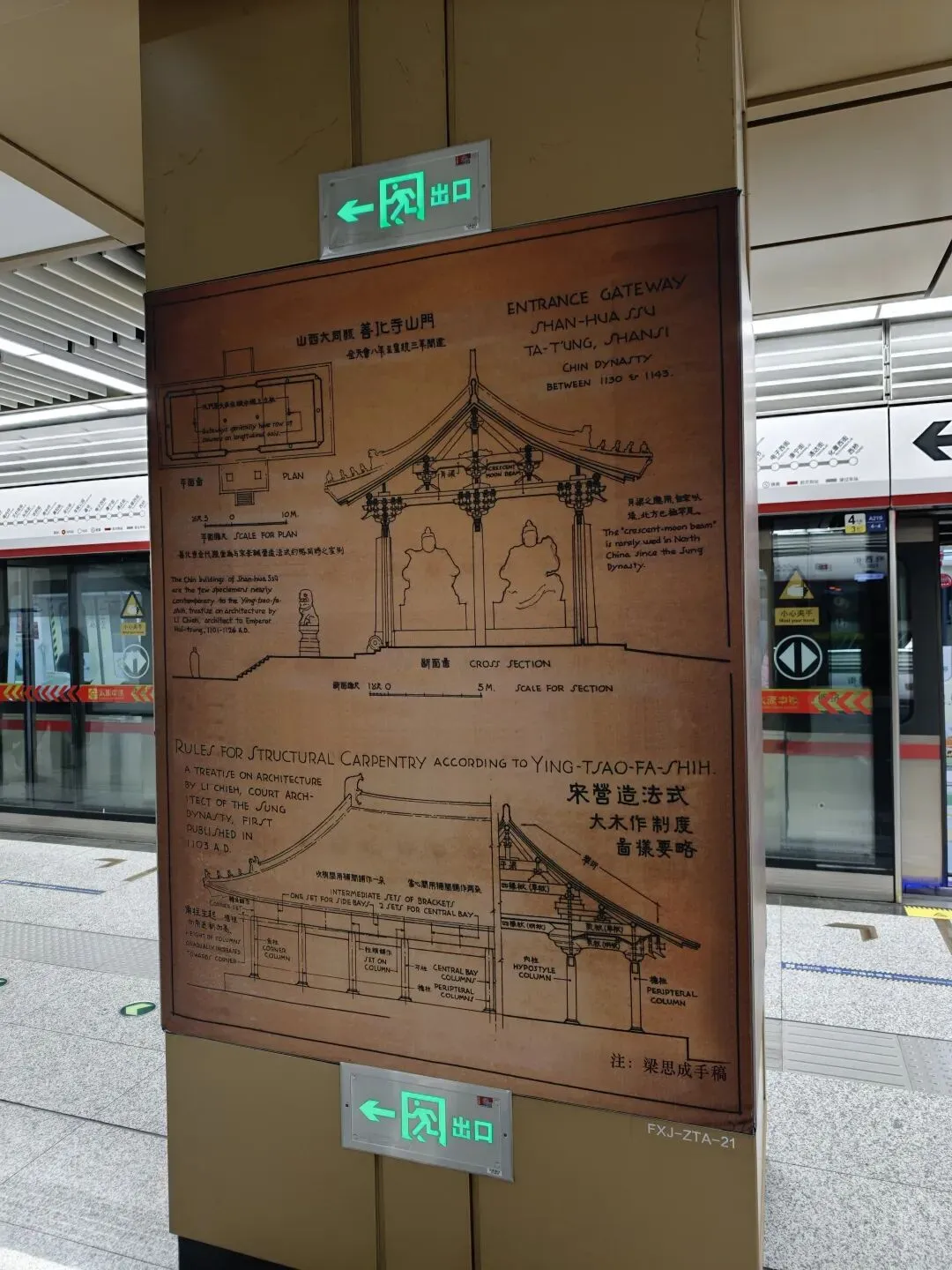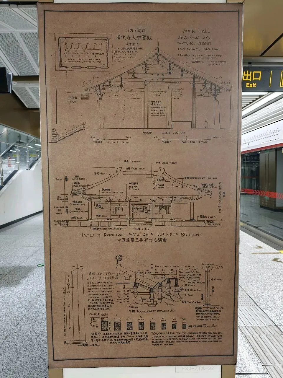 太原地铁站里的这个梁思成手绘太棒了,有好多副,看了半天。