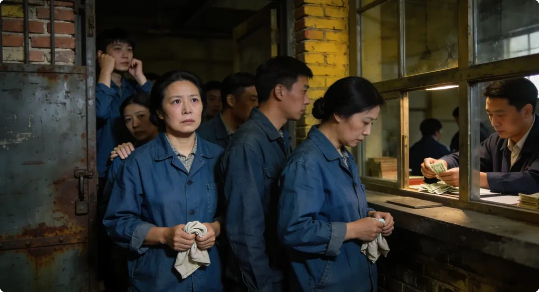 改革开放前的工厂,发工资是件大事。每个月固定的日子,财务室门口就排起长队。