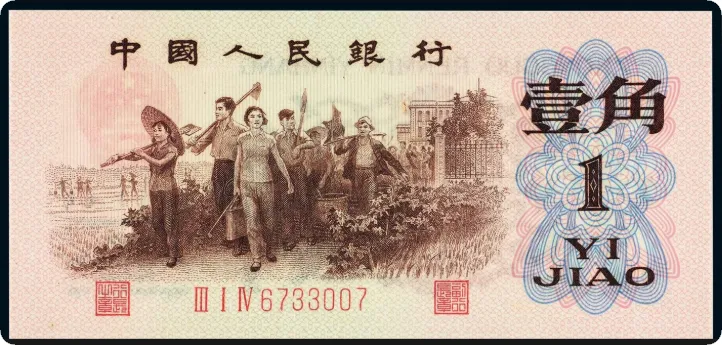 去年整理母亲的遗物,从一个旧小木盒里翻出几张纸币,最上面那张只有壹角面值,纸张已经发黄,背面是墨绿色的,两边的花纹像蝴蝶翅膀。