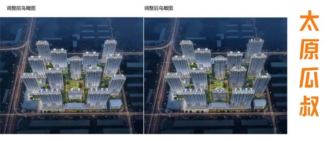 在建筑单体上,多栋住宅的高度和层数根据实际情况也进行了修改。