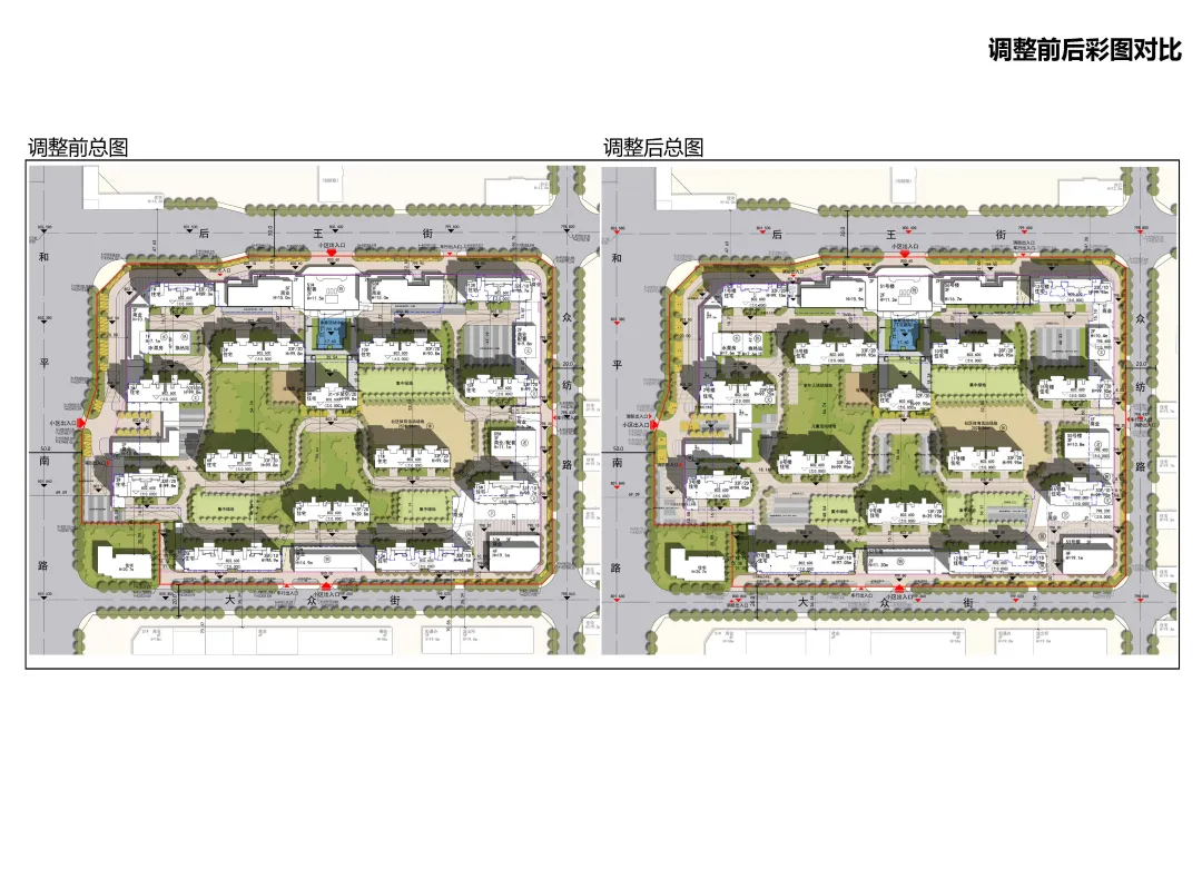 这次调整在不牺牲核心绿地率的前提下,通过对楼栋层数和布局的挪腾,实现了居住容量和配套服务的升级。