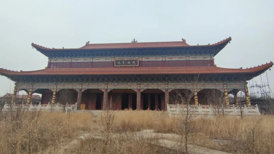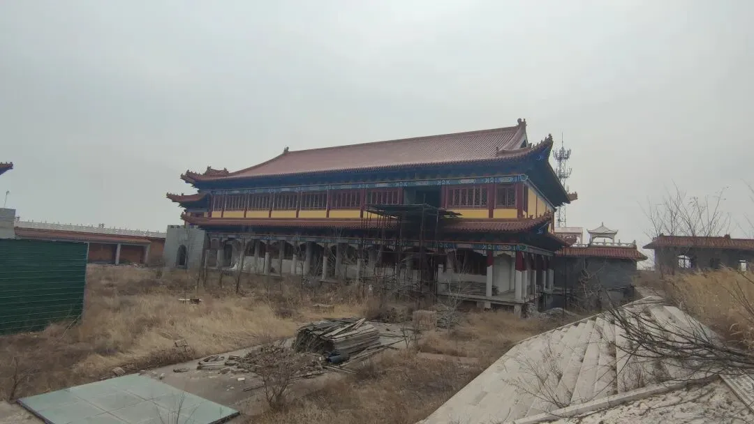 可谁也没有想到,工程在主体完工后,慢慢停了下来。机器声消失了,工人走了,工地静了。这一停,就是好几年。如今的卧佛寺,成了一座“半成品”:大门紧锁,锈迹斑斑;侧殿内部空空,佛像未立;庭院荒草疯长,台阶被淹没;脚手架在风里嘎吱作响,像一声声叹息。