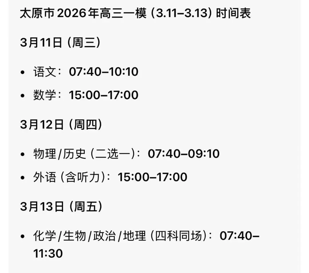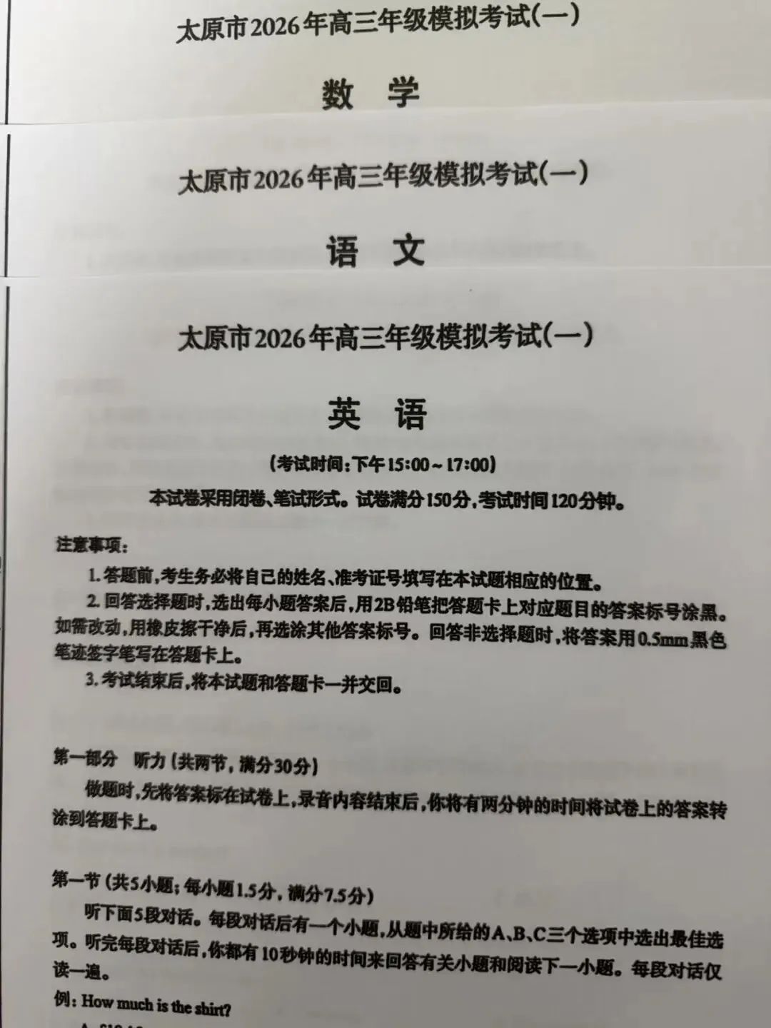 【试题+答案】太原一模山西省太原市2026年高三年级模拟考试(一)/高三一模全科试卷汇总!