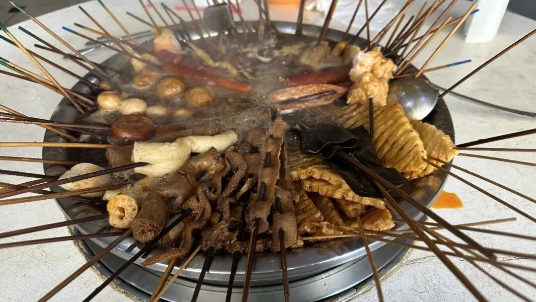 鸡爪炖得软烂,一抿脱骨;牛肚弹牙,越嚼越香;海带入味儿不软烂;豆腐串吸足了汤汁,咬一口直往外滋水。都是些不起眼的家常食材,煮进这锅老汤里,愣是吃出了不一样的味道。
