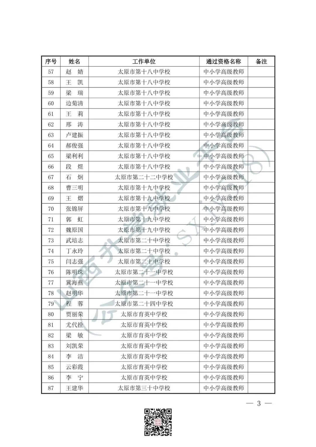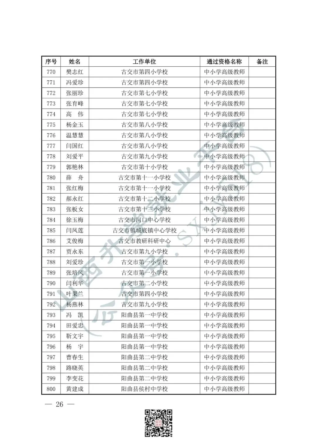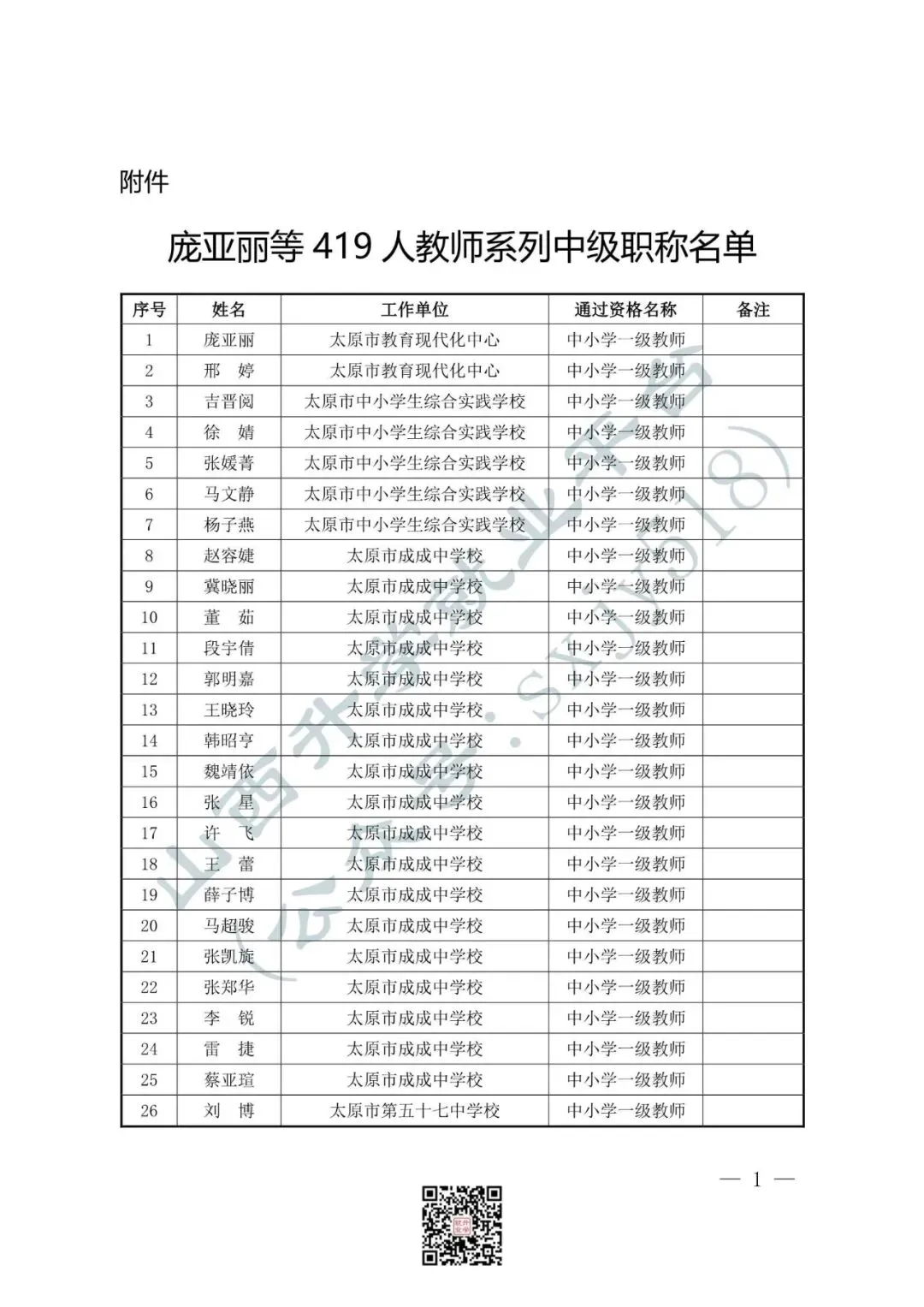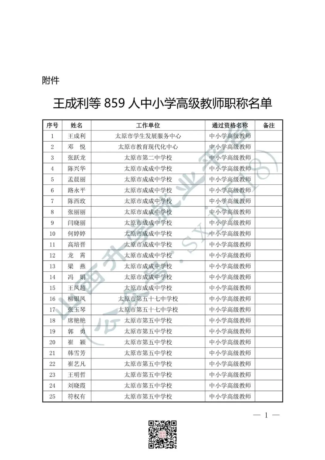 经审核,同意太原市中小学高级教师职称评审委员会于2026年1月30日评审通过的王成利等859人中小学教师系列高级职称评审结果,现予以公布。