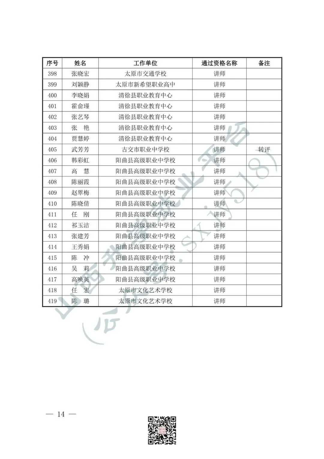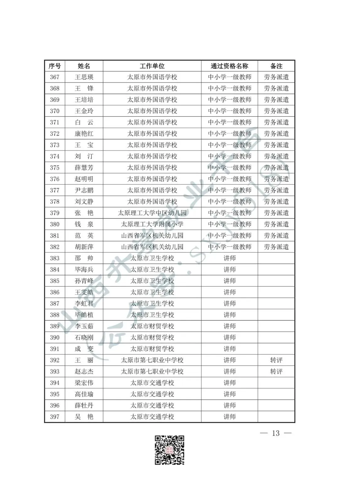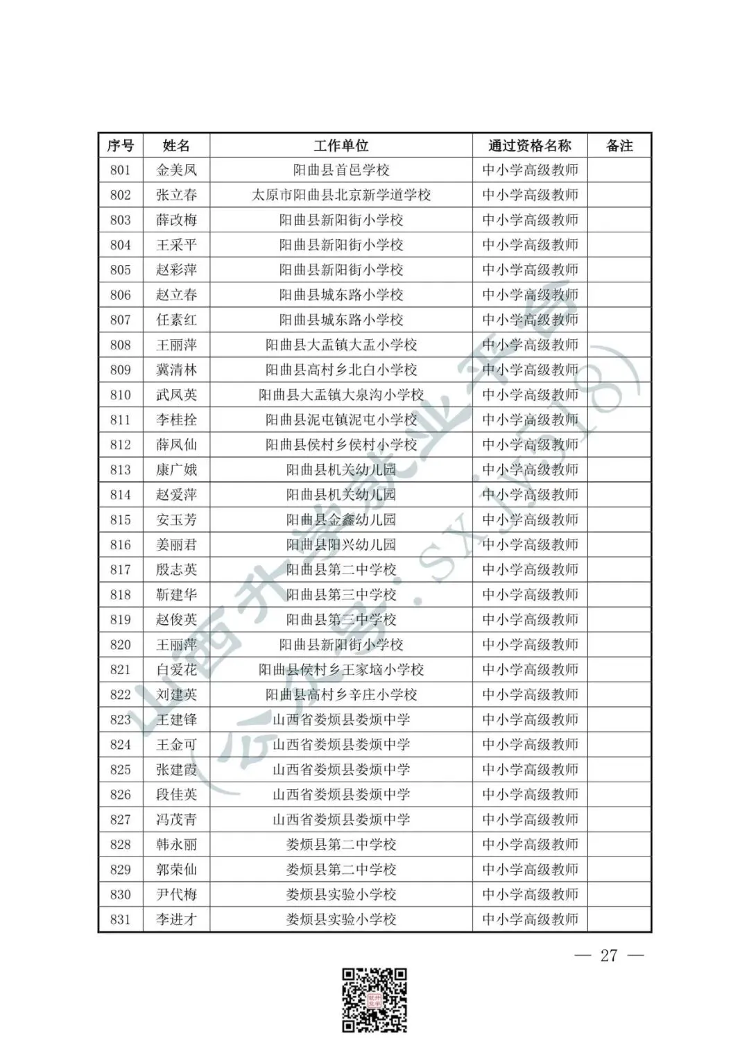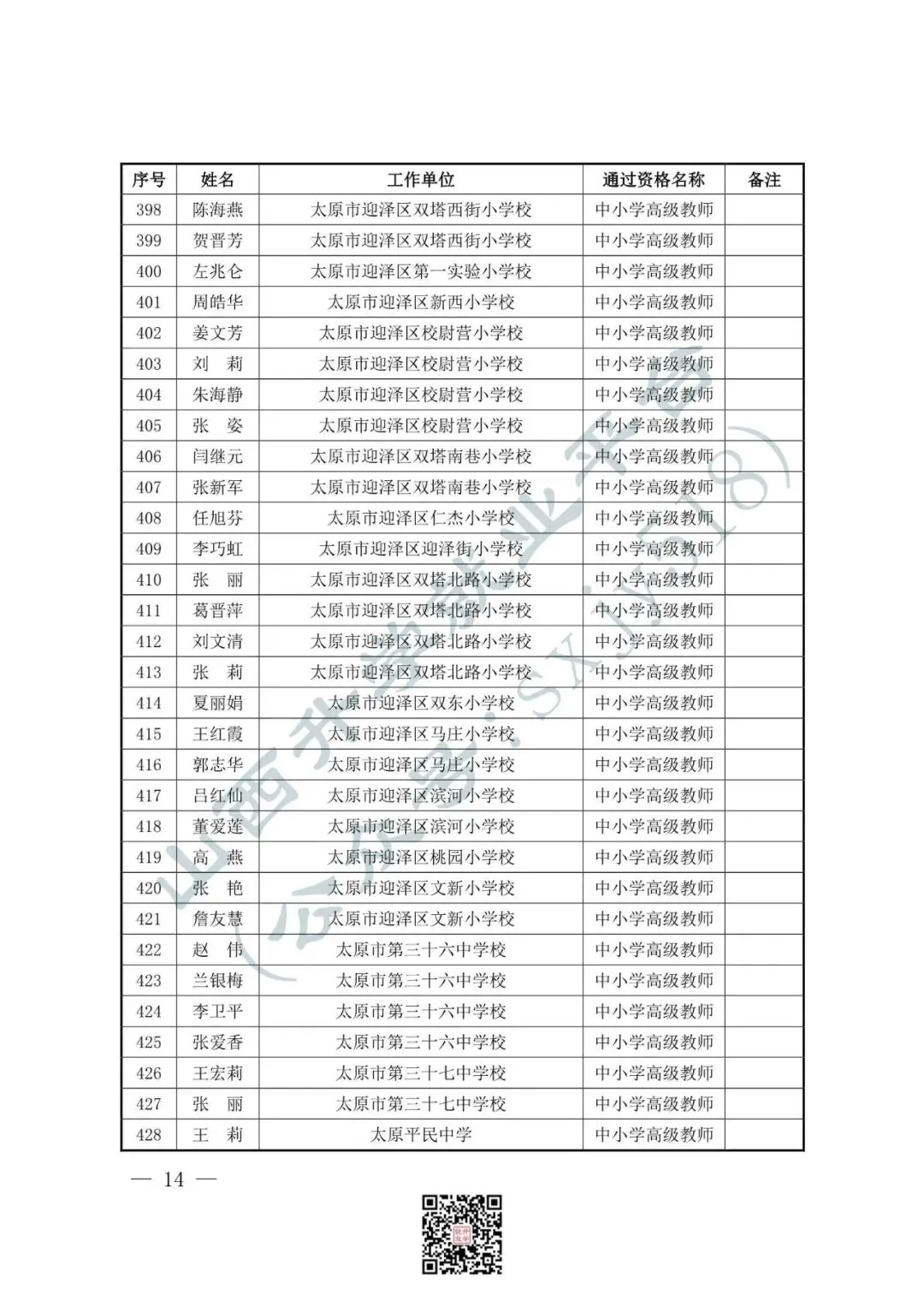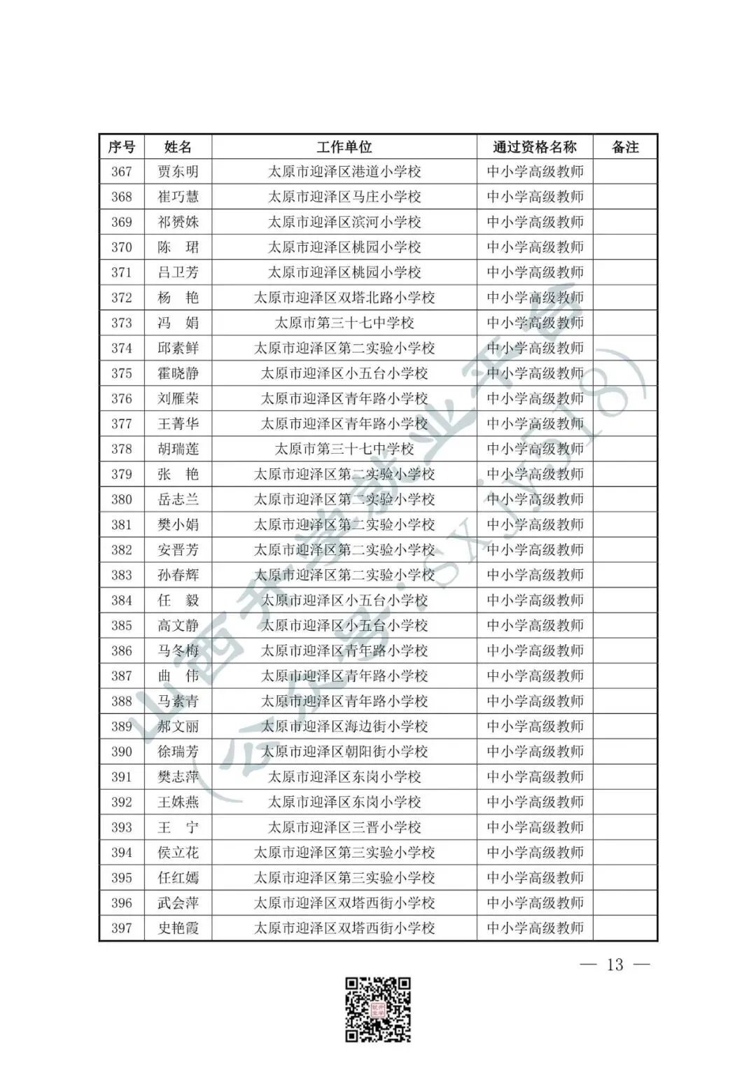 经审核,同意太原市中小学高级教师职称评审委员会于2026年1月30日评审通过的王成利等859人中小学教师系列高级职称评审结果,现予以公布。
