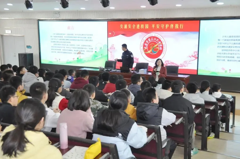 为进一步增强全校师生交通安全意识,有效预防和减少交通事故发生,切实筑牢校园交通安全防线,2026年3月9日下午,太原三十六中教育集团老军营校区特邀太原市公安局交管支队四大队一级警长张凯走进校园,为部分初一年级学生开展了一场干货满满的交通安全专题宣讲活动。本次活动由学校政教处副主任刘宇主持。