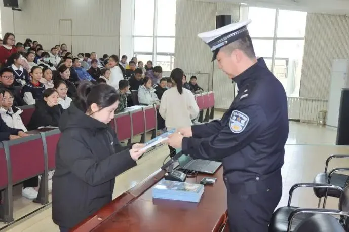 宣讲结束后,张警官还为现场的同学们送上了精心准备的交通安全读本。他叮嘱同学们,要把交通安全读本中学到的安全知识牢记心间、落实于行,时刻守护好自身的出行安全。