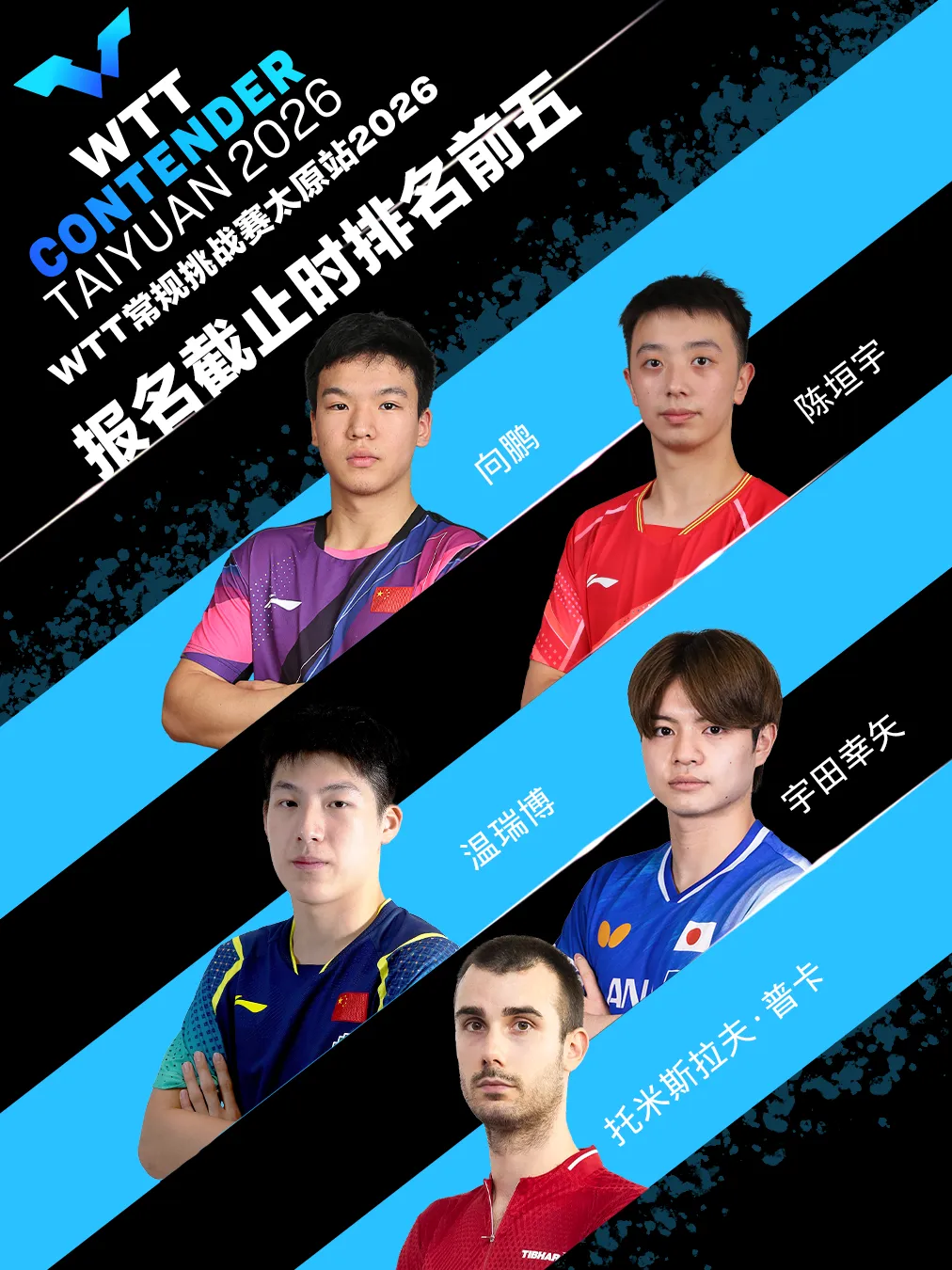 WTT常规挑战赛太原站2026首批参赛运动员名单出炉,向鹏、朱雨玲、长崎美柚等选手榜上有名。