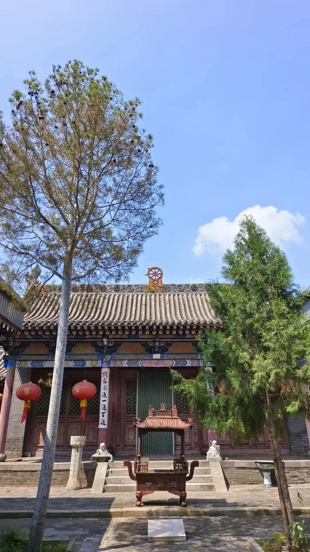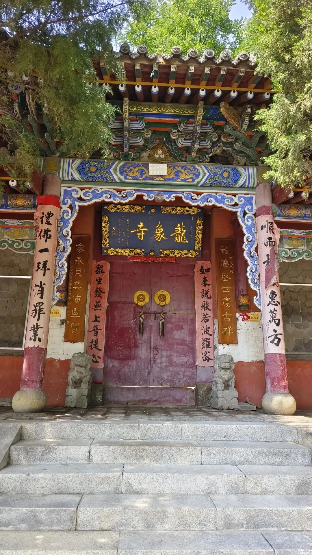 不同于城区名寺的喧嚣,龙象寺藏于同过村北,远离闹市,院内古柏苍劲,枝叶繁茂,与红墙灰瓦的殿宇相映成趣。