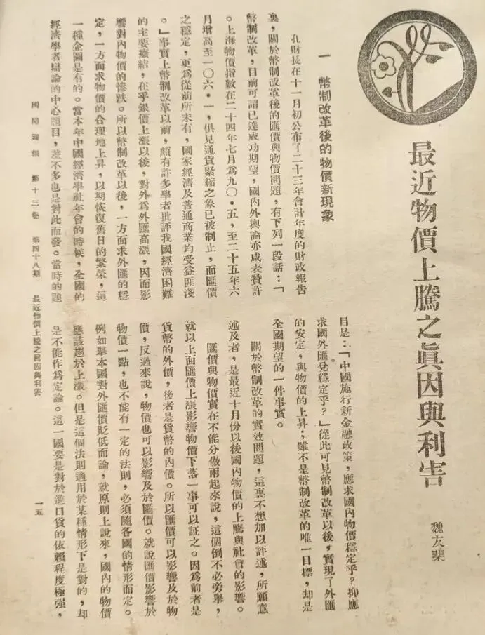 上图为1948年3月31日《民众日报》载文《物价今昔观》