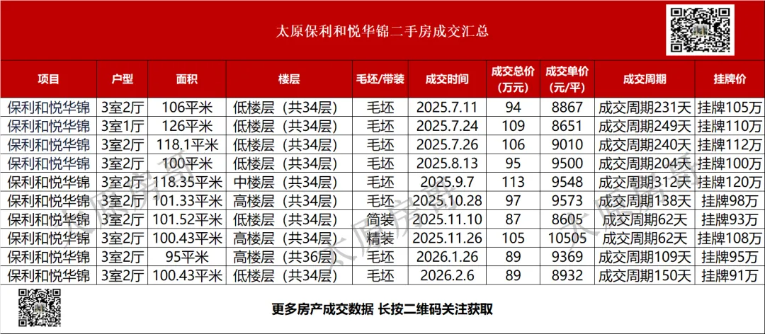 保利和悦华锦位于太原晋源南中环与西中环交汇处西北侧,2022年11月11日开盘,均价9200元/㎡,毛坯,目前二手房成交了10套。